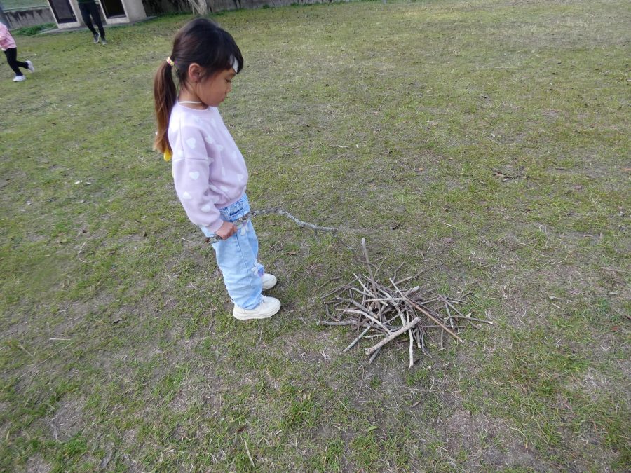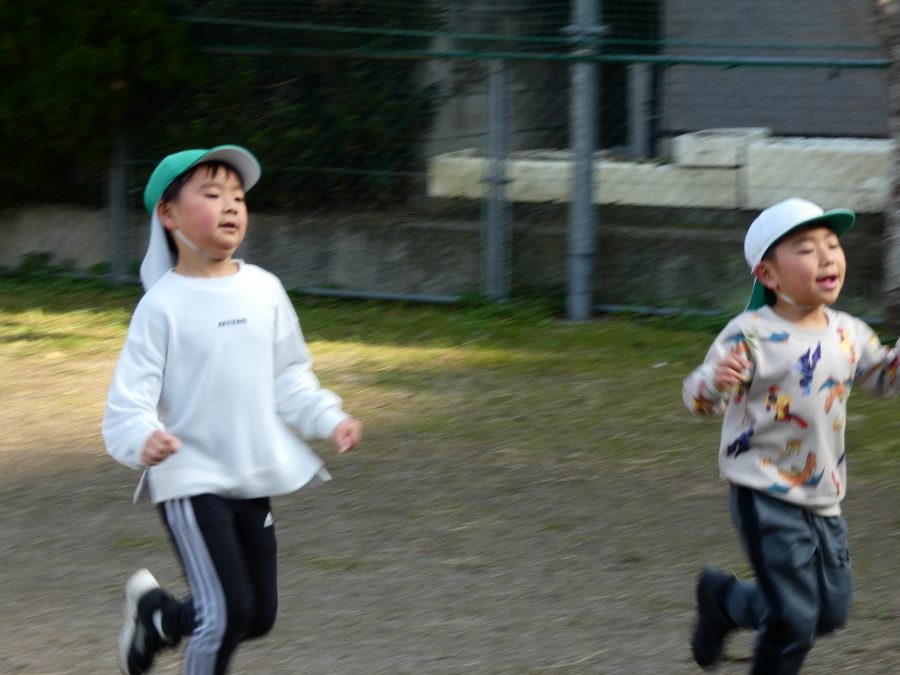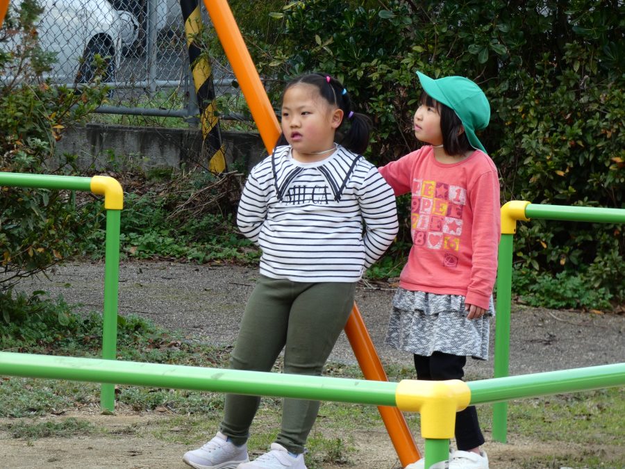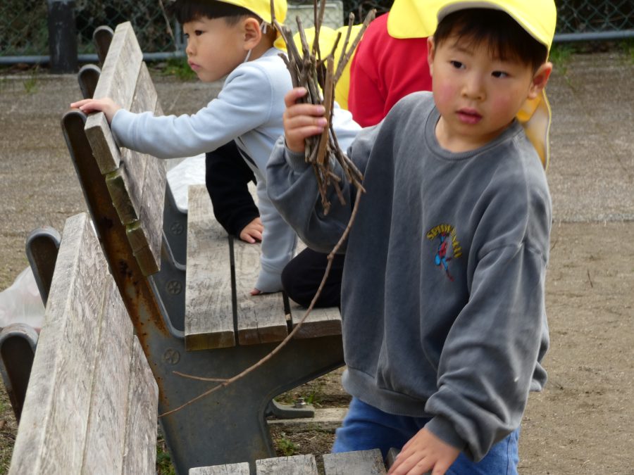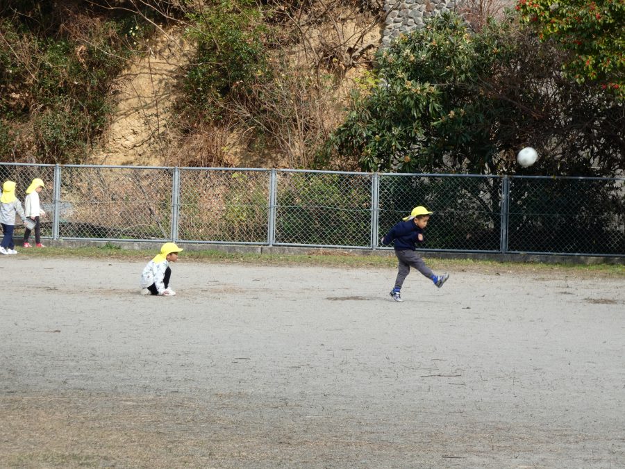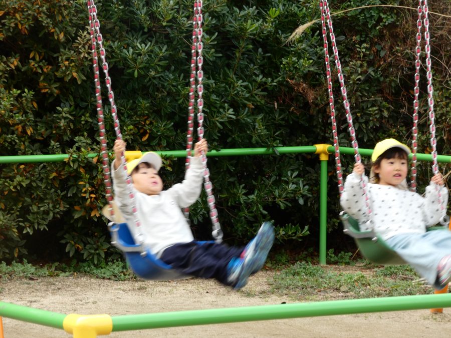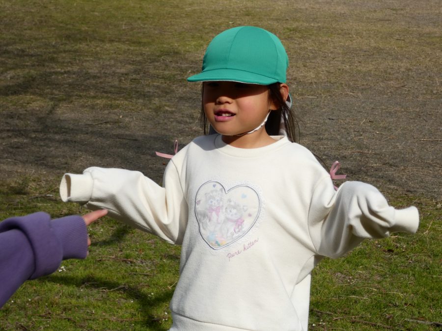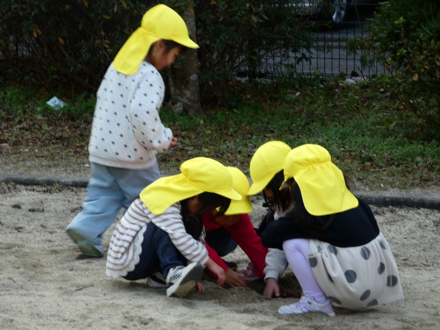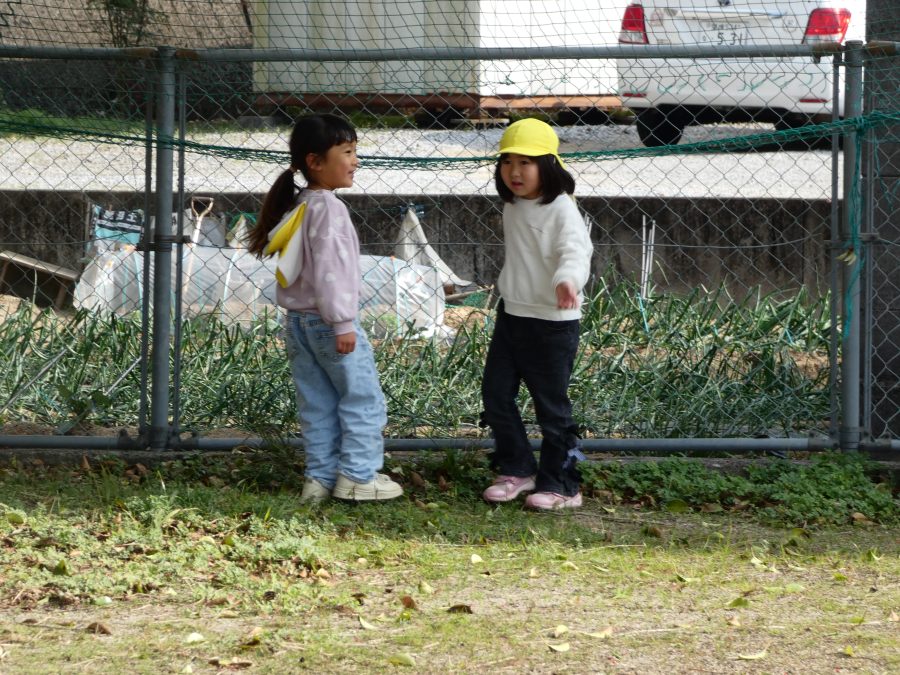 黄組さん、緑組さんが一緒になかよし公園に行って遊びました。行き帰りは、仲良く手をつないで歩きました。公園では、一緒にサッカーや虫探しを楽しんでいました。