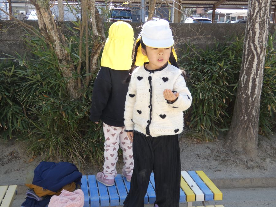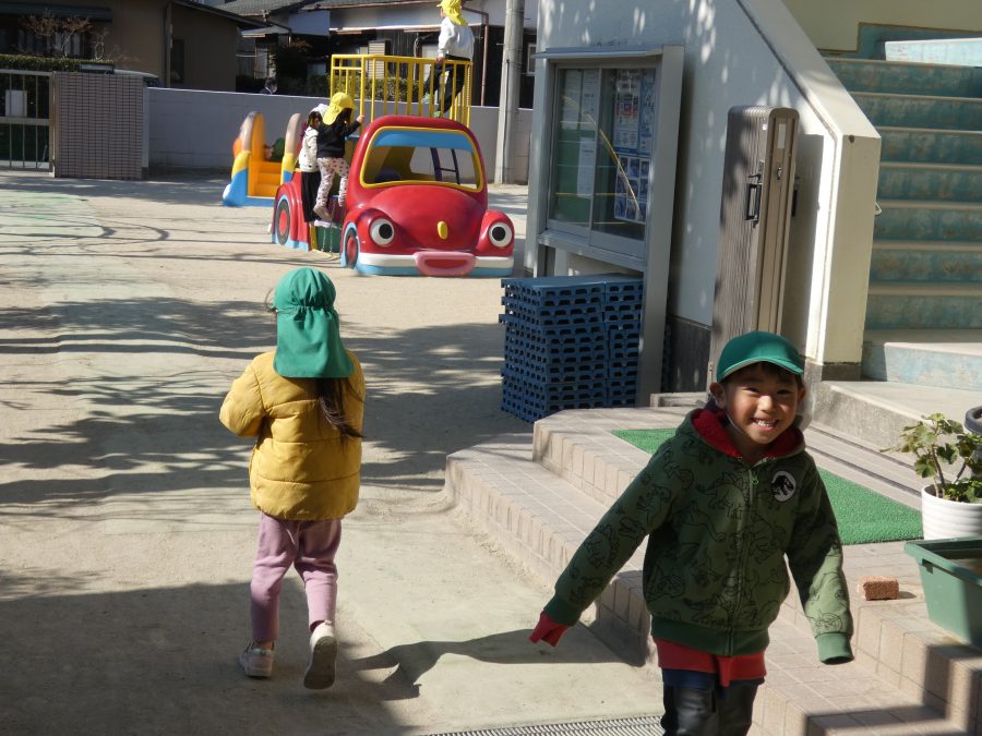 2月に入りました。今日の昼間はお天気もよく、こどもたちは、伸び伸びと外遊びを楽しんでいました。先週、インフルエンザBに罹患し、お休みしていた子どもたちもかなり復帰しました。でも、近隣の学校では学級閉鎖などあるようです。みなさん、お気を付けくださいね。