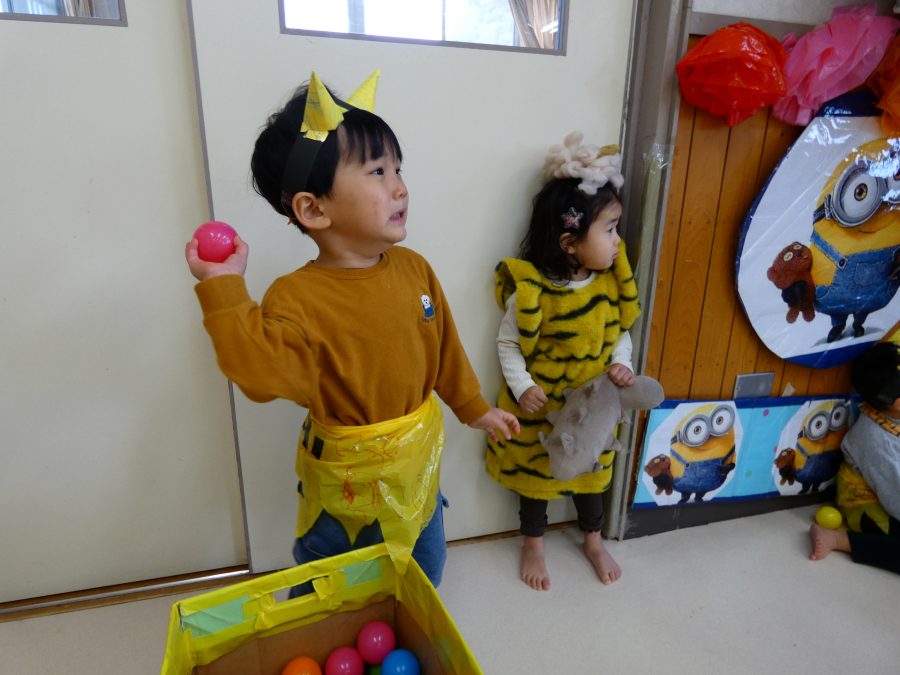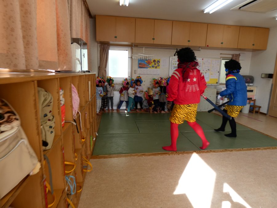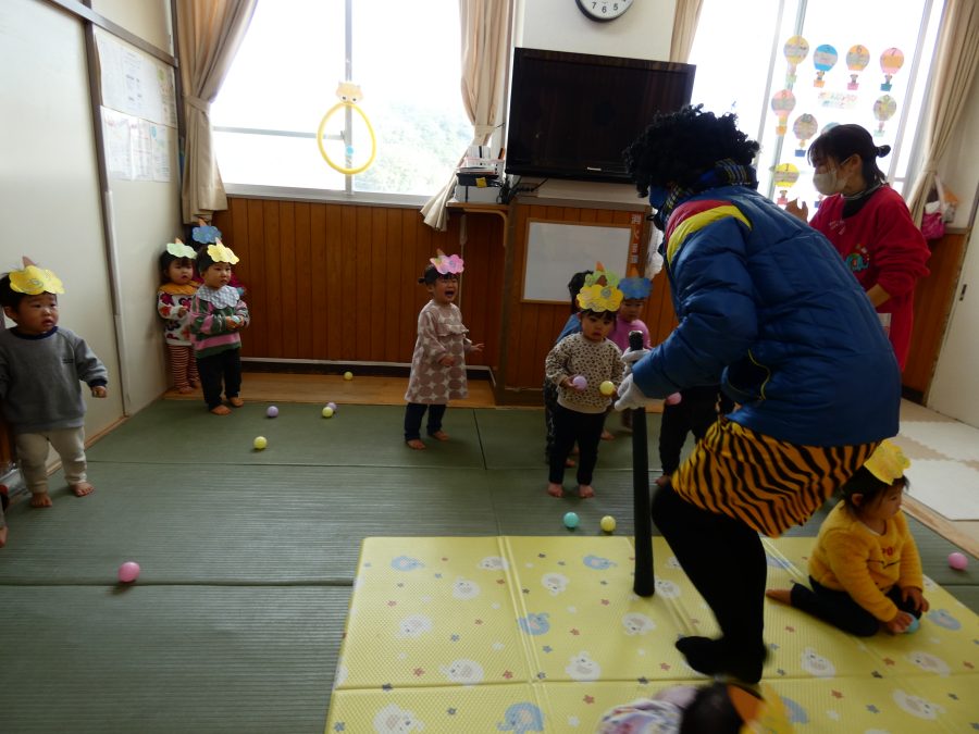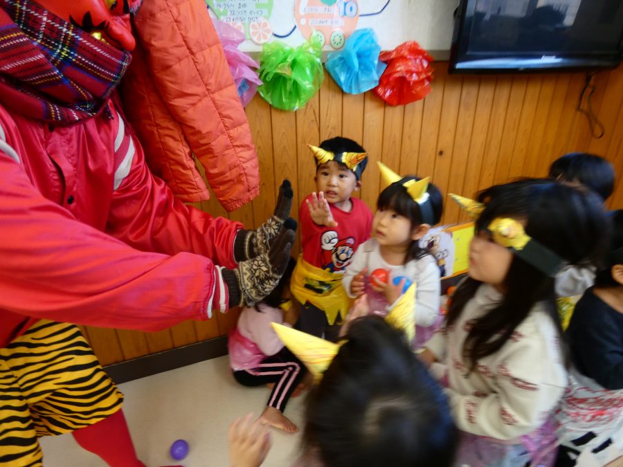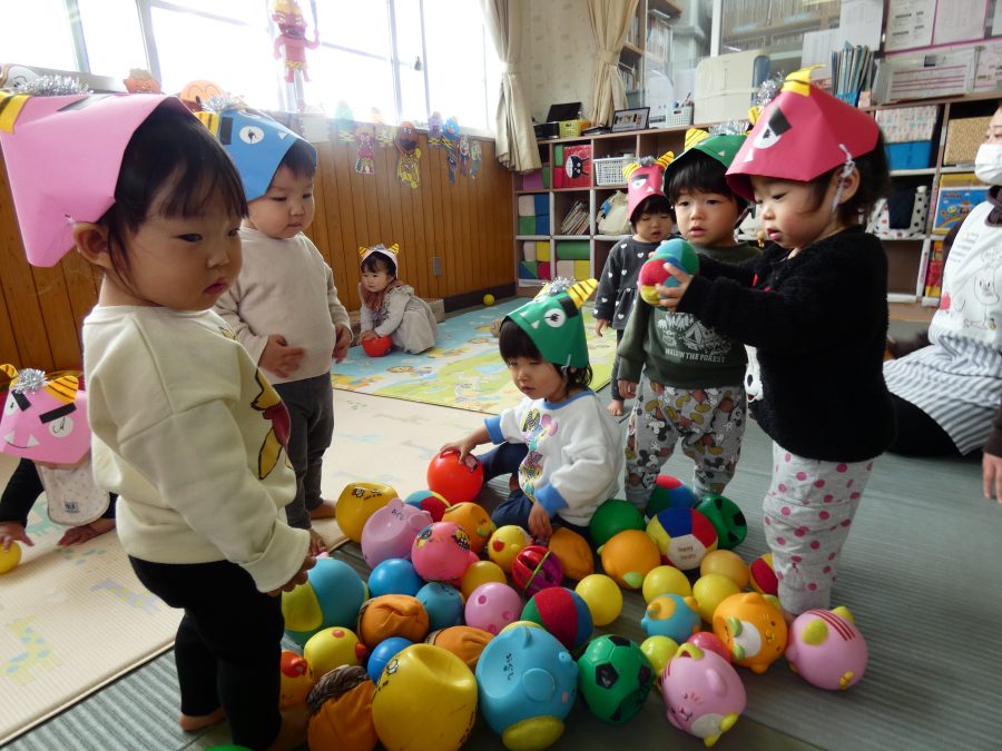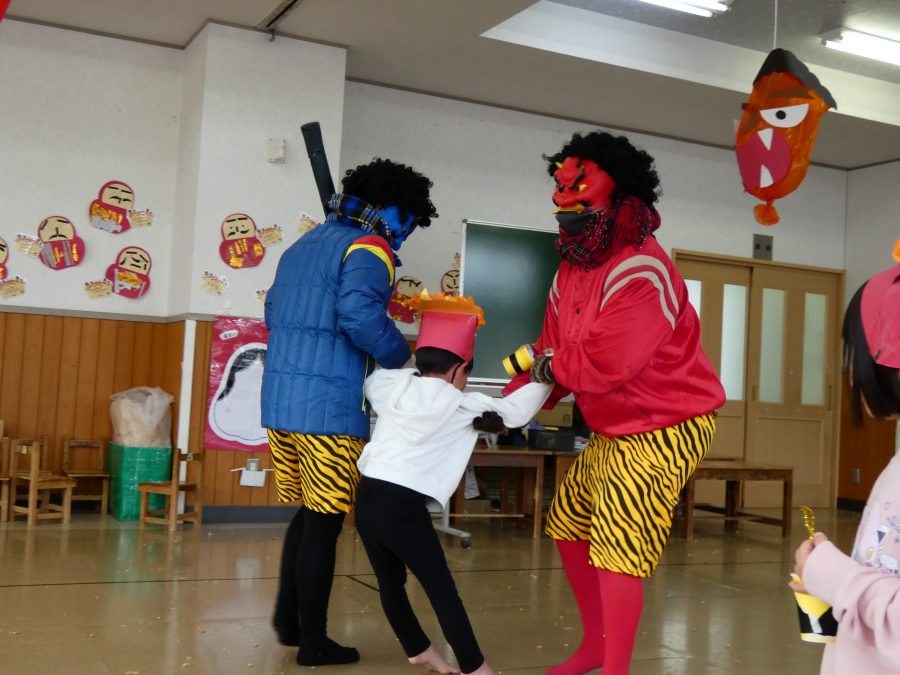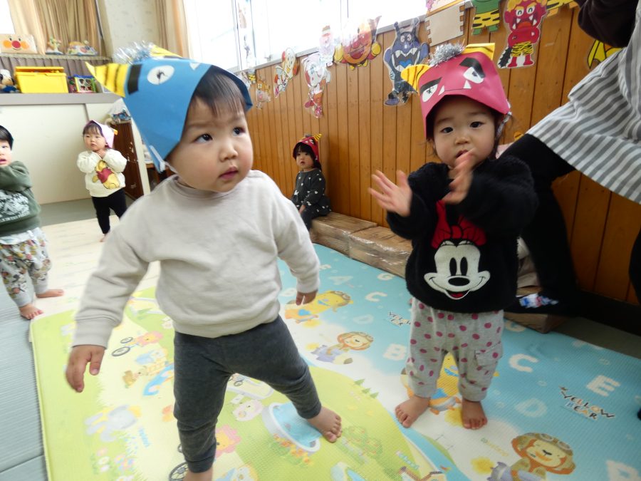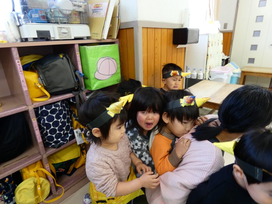 今日は節分。暦の上では季節の変わり目です。保育園でも、節分の行事として「豆まき」をしました。恒例の「鬼さん」も各保育室に現れ、子どもたちは大騒ぎ。でも、やがて慣れて鬼さんたちとハグする子どもたちでした。