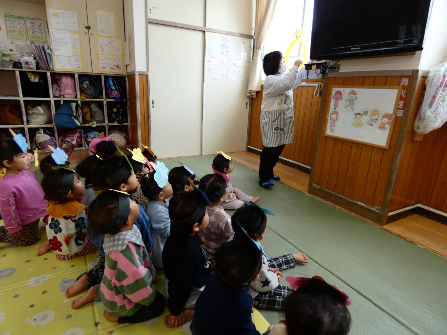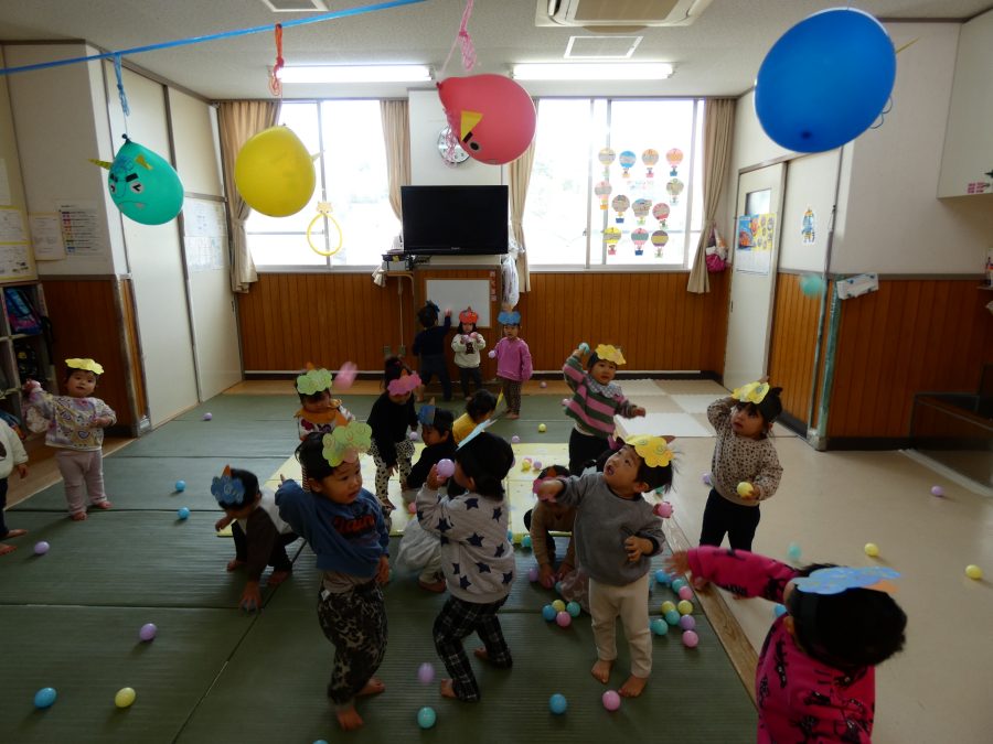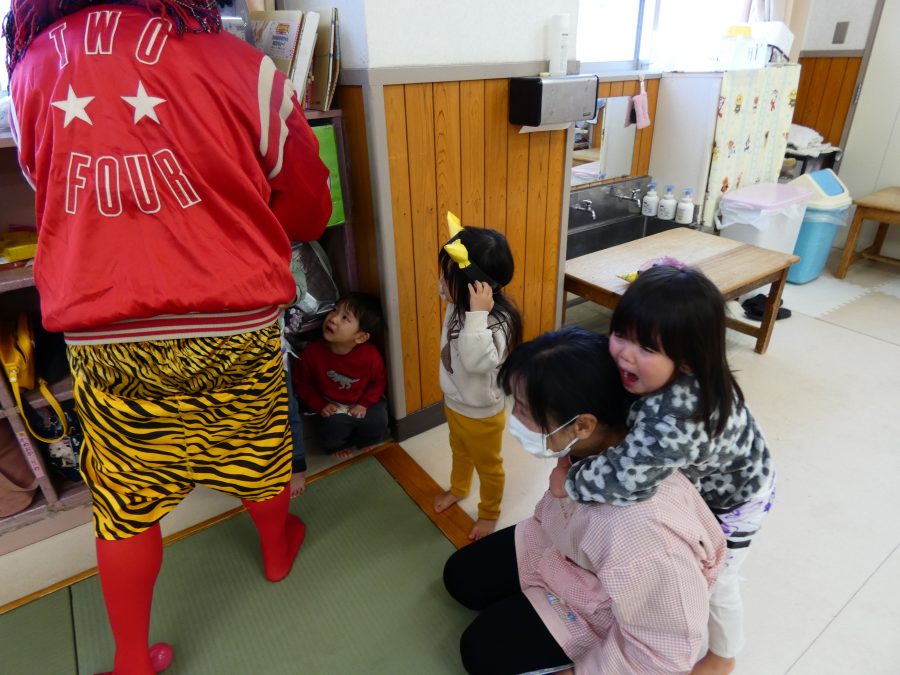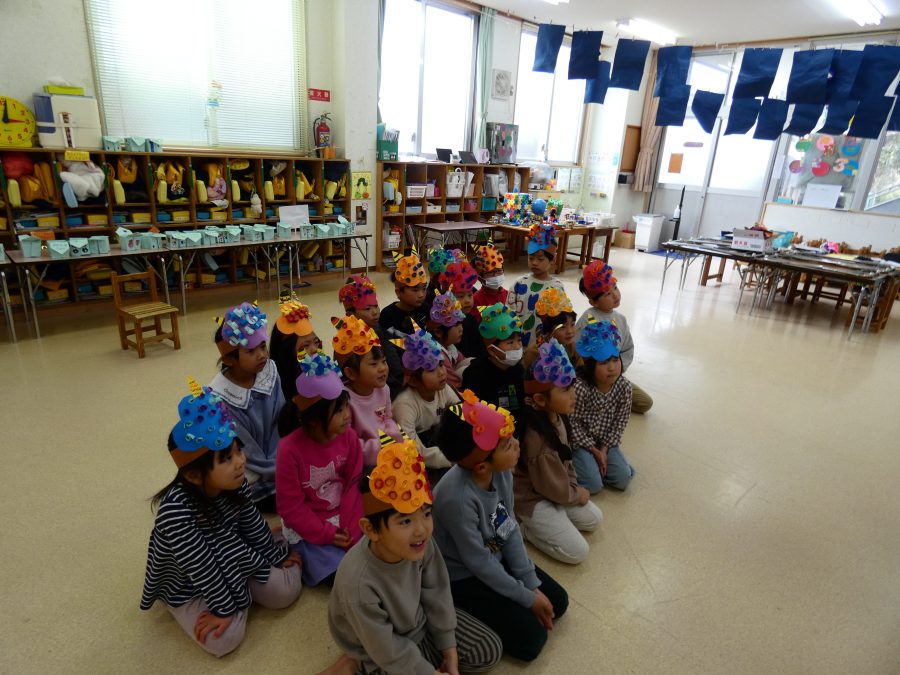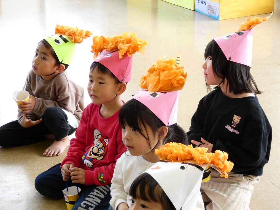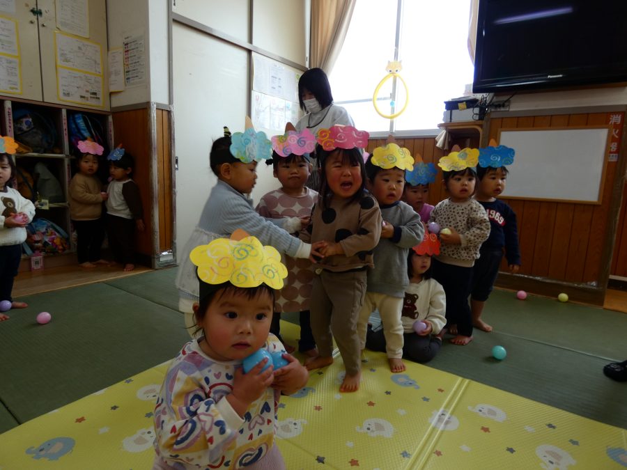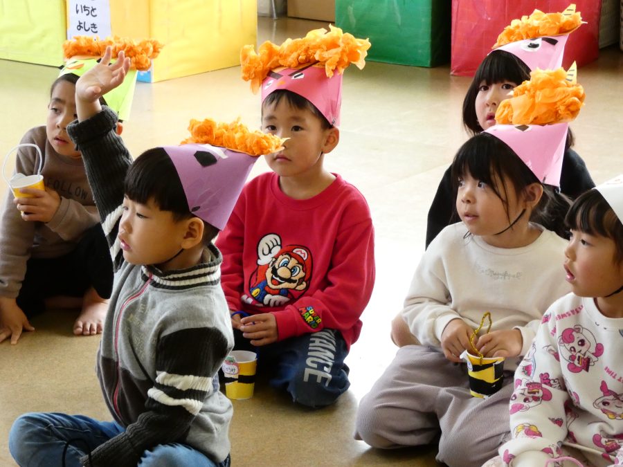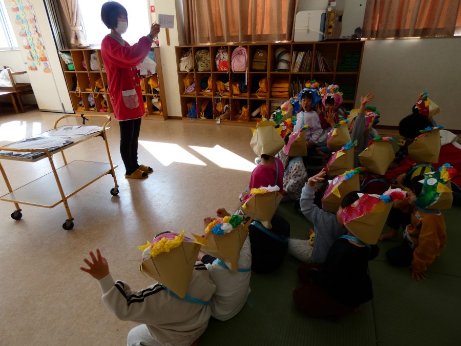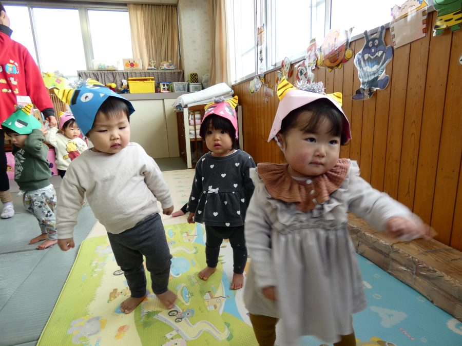 今日は節分。暦の上では季節の変わり目です。保育園でも、節分の行事として「豆まき」をしました。恒例の「鬼さん」も各保育室に現れ、子どもたちは大騒ぎ。でも、やがて慣れて鬼さんたちとハグする子どもたちでした。