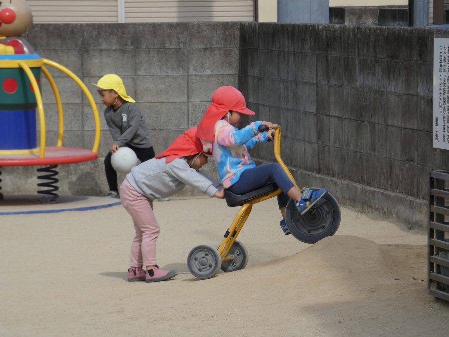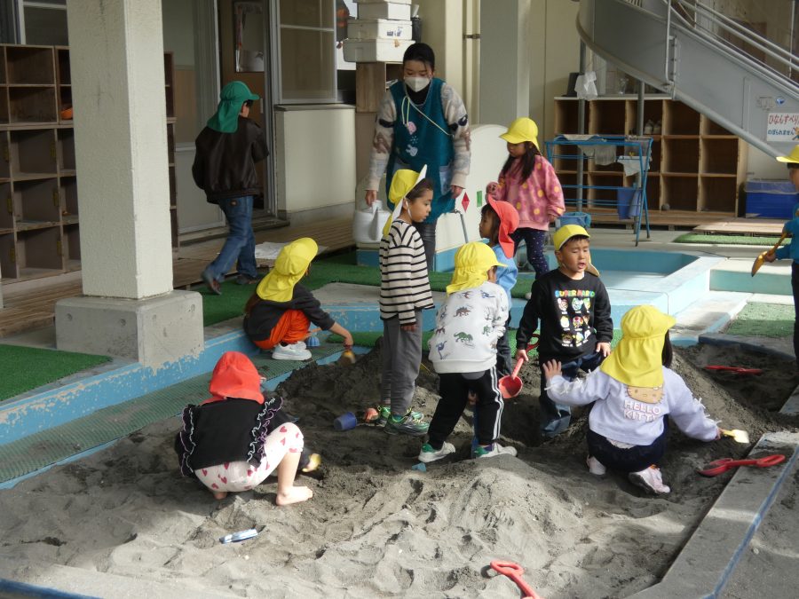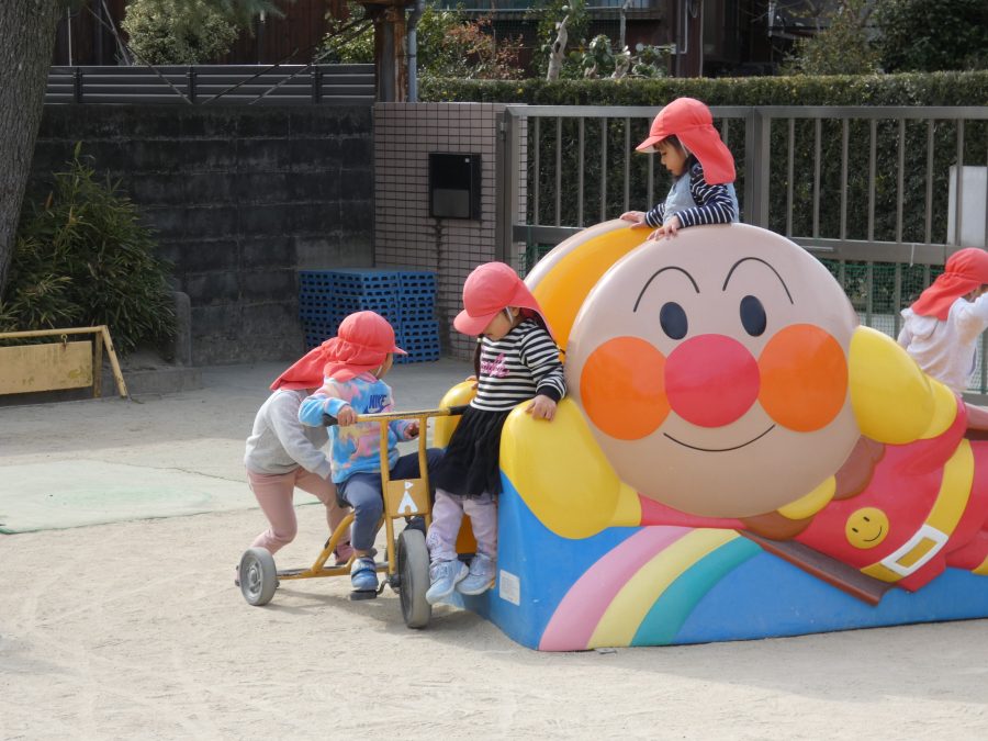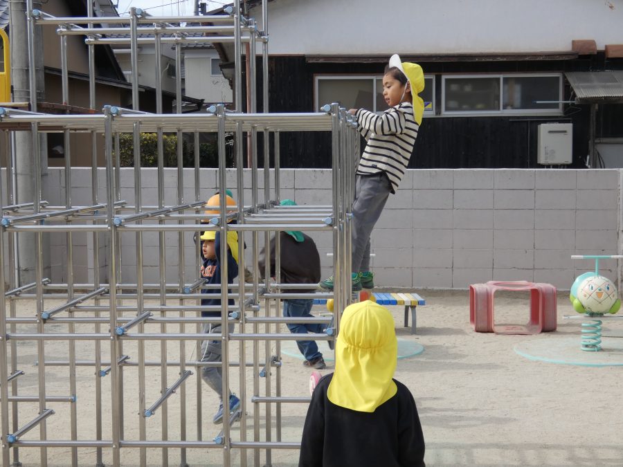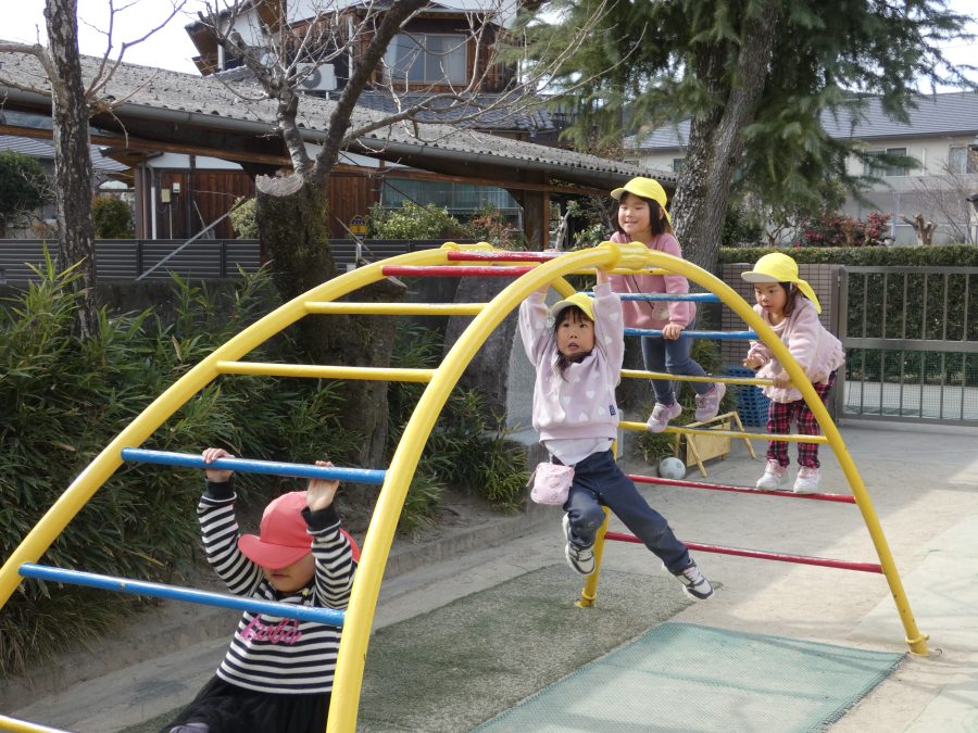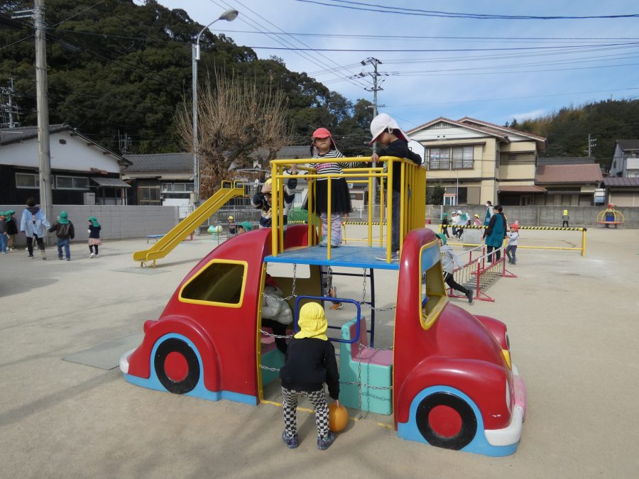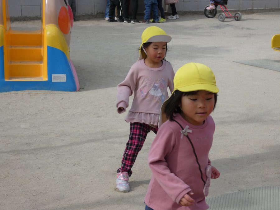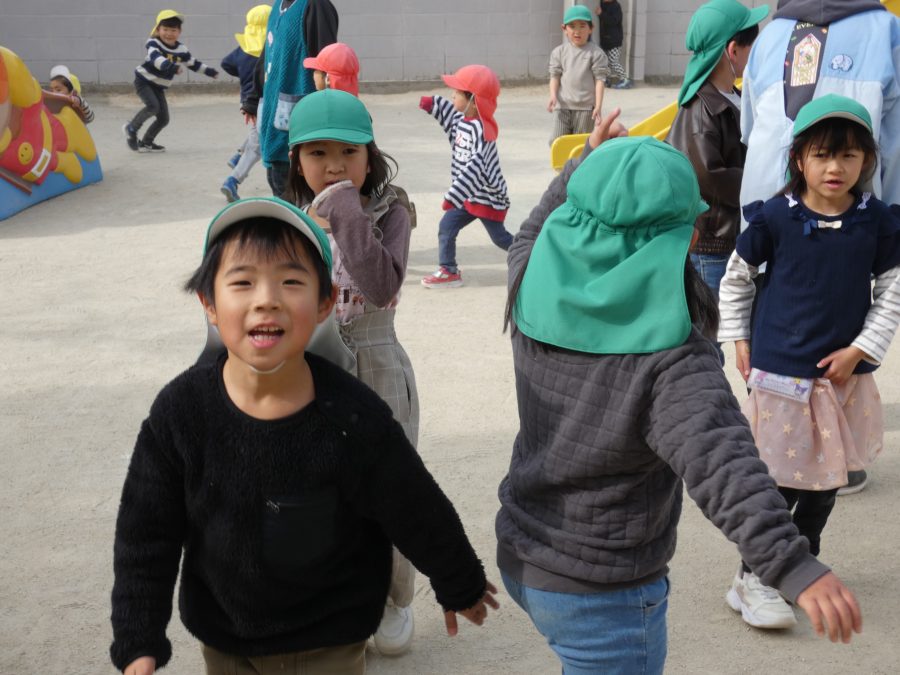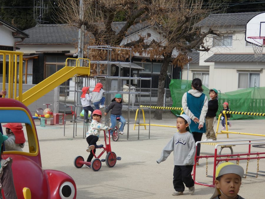 今日の午後、園庭で子どもたちが遊んでいる様子です。インフルエンザから回復し登園できている子が増えましたが、近隣の学校の学級、学年閉鎖もあり、まだまだ油断はできません。引き続き、感染防止対策をよろしくお願いします。