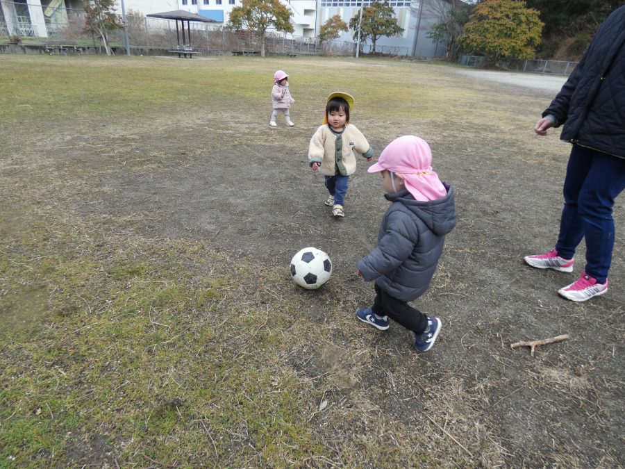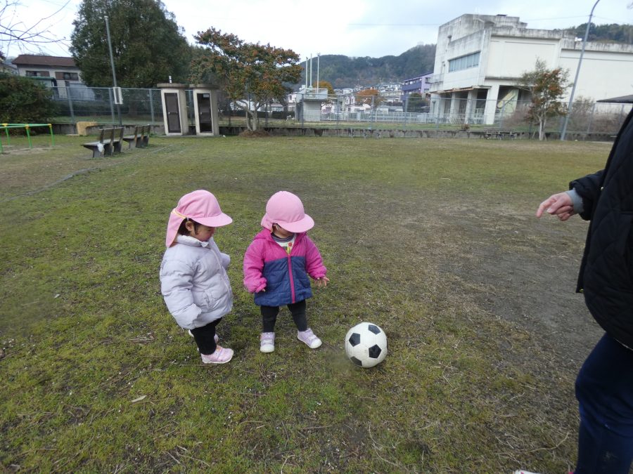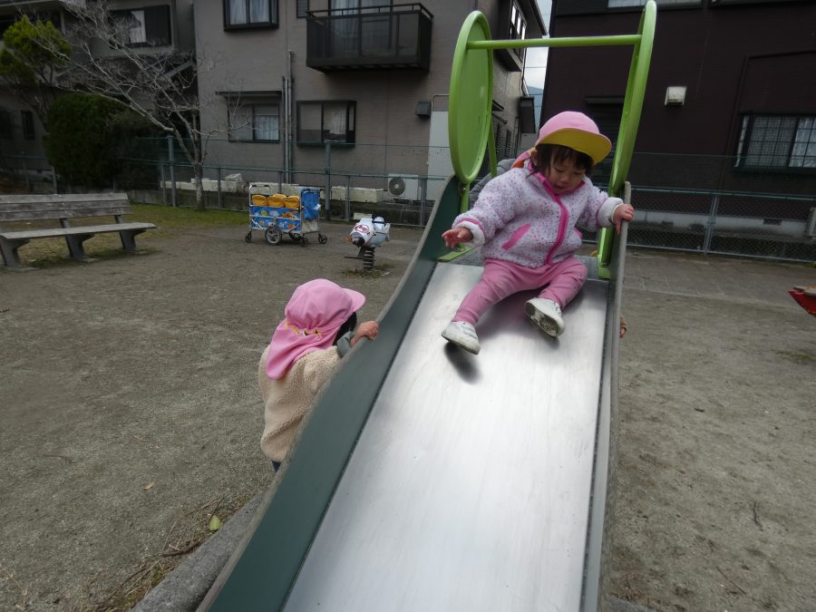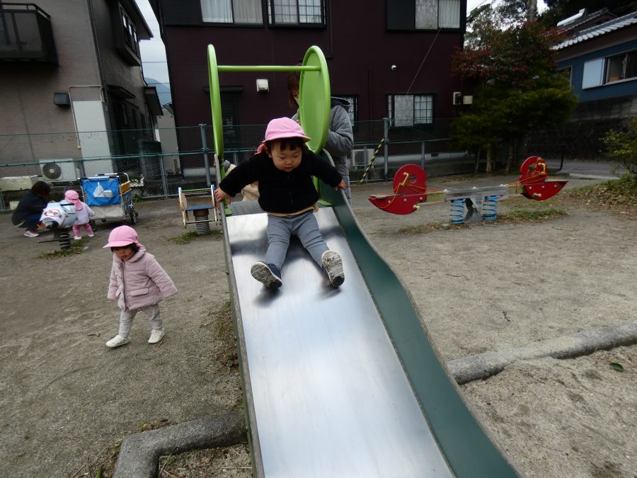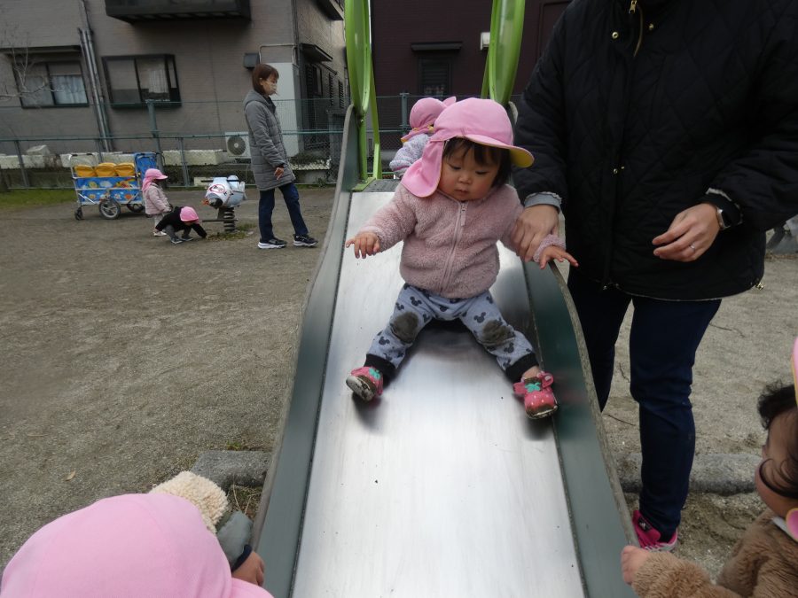 桃0組さんがお散歩に「なかよし降園」に行きました。降園では、滑り台で何度も滑ったり、サッカーボールを追いかけて遊んだりしました。みんな元気にあそぶことができました。
