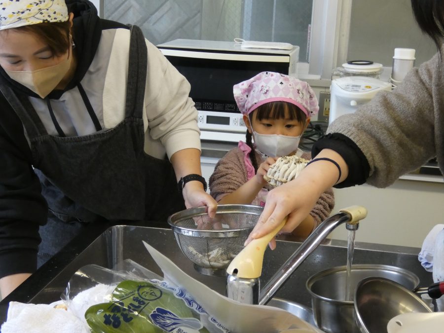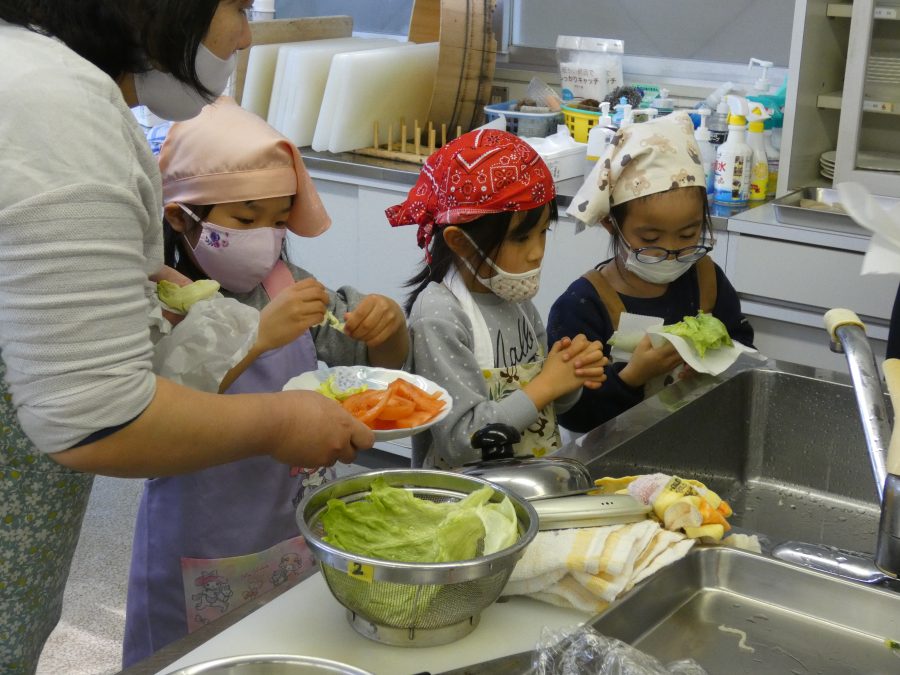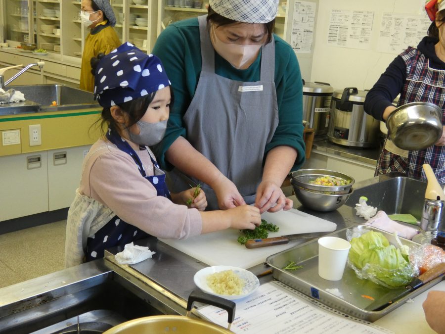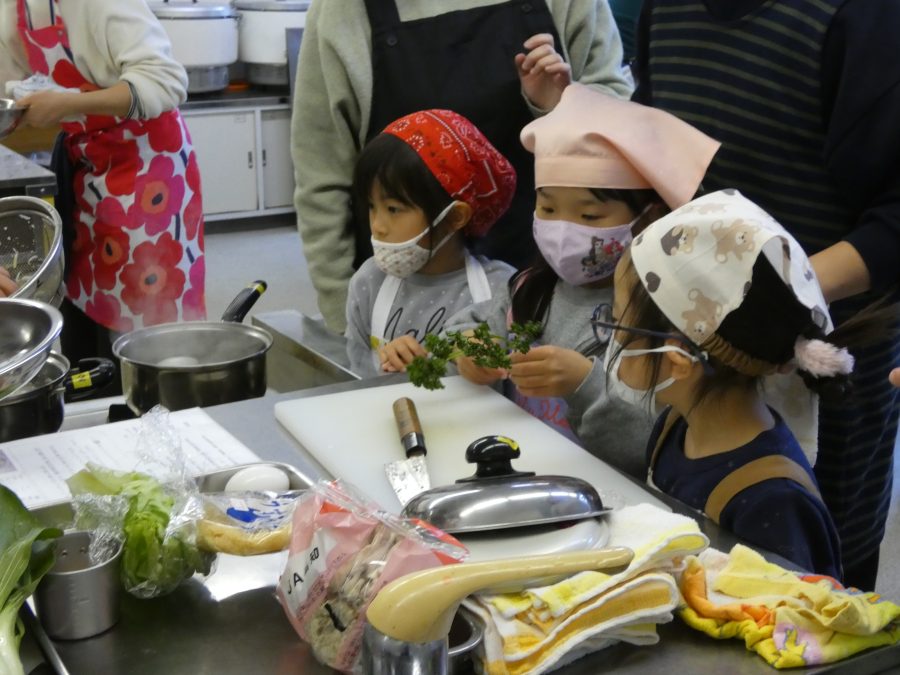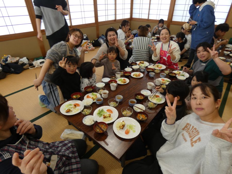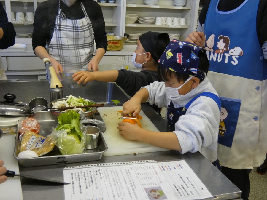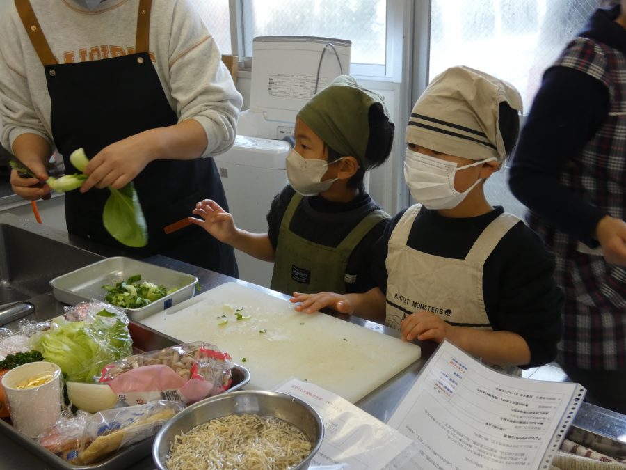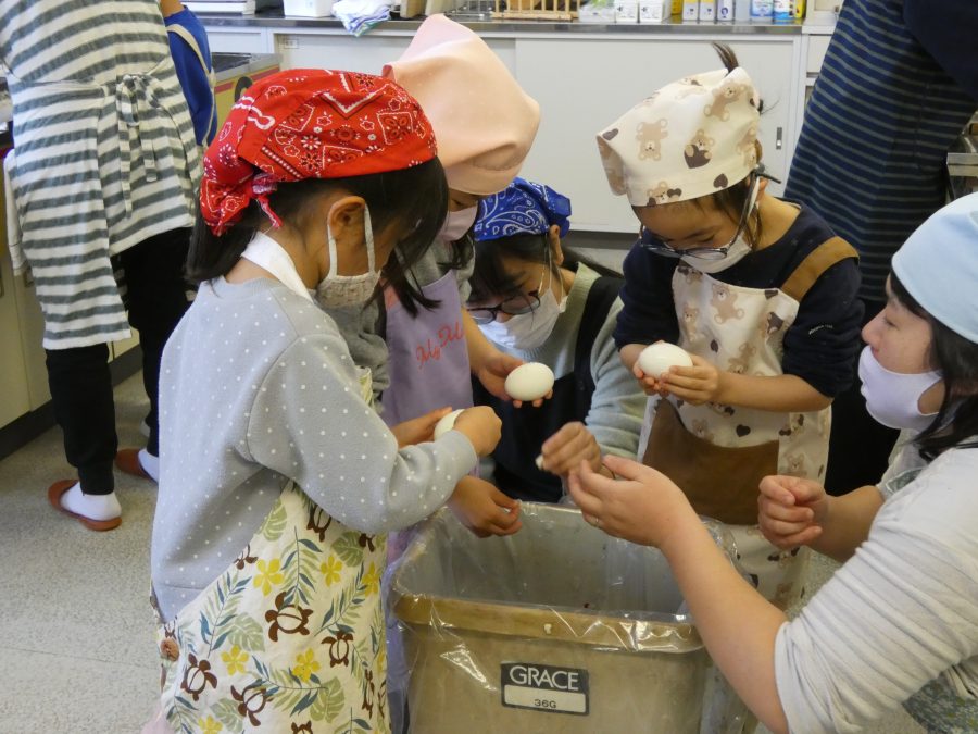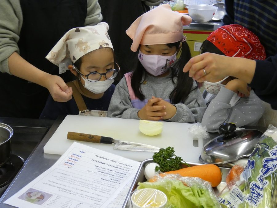 今日、親子料理教室を実施しました。まずはじめに「鯛一郎くんの解体ショー」を講師の先生に見せてもらいました。子どもたちは興味津々で見ていました。続いて、いよいよ親子でクッキング。今回は「鯛ポンカツ麦タルソース、切り干し大根のサラダ、鯛のあらすまし汁」をみんなでワイワイ言いながら作りました。出来上がったら、炊きたての美味しいご飯(三間米)と一緒にいただきました。子どもたちが地元の食材に親しむよい機会となりました。