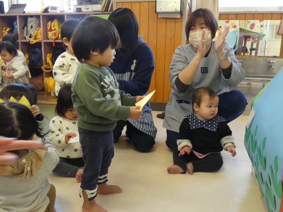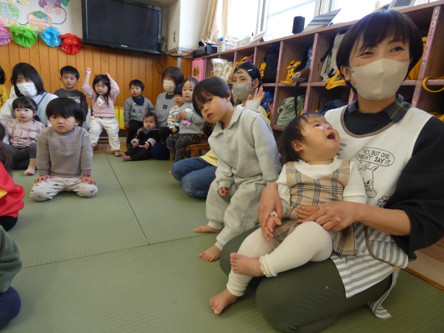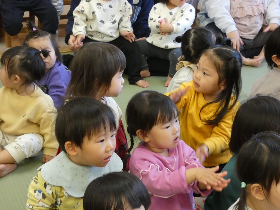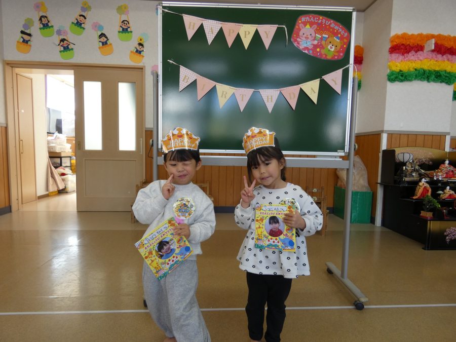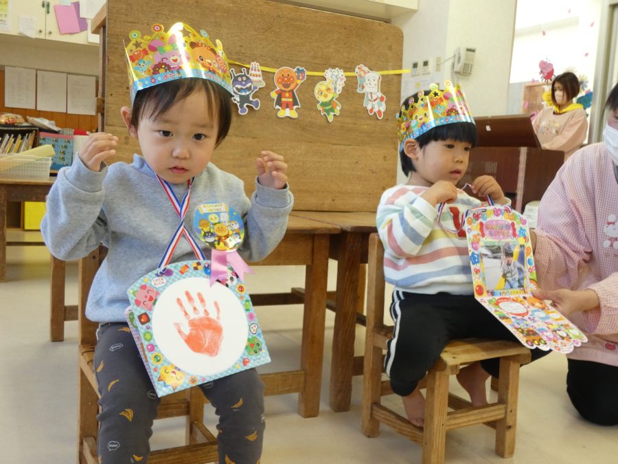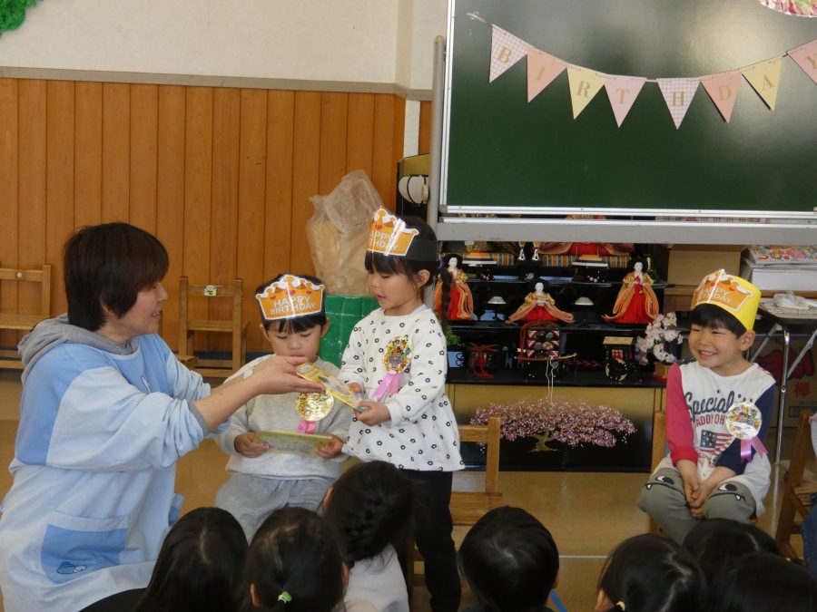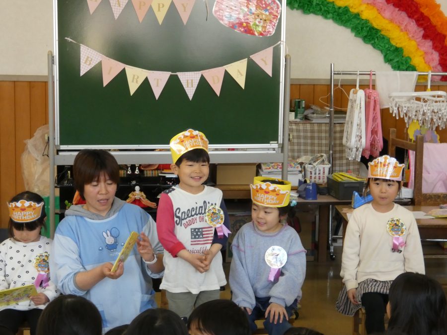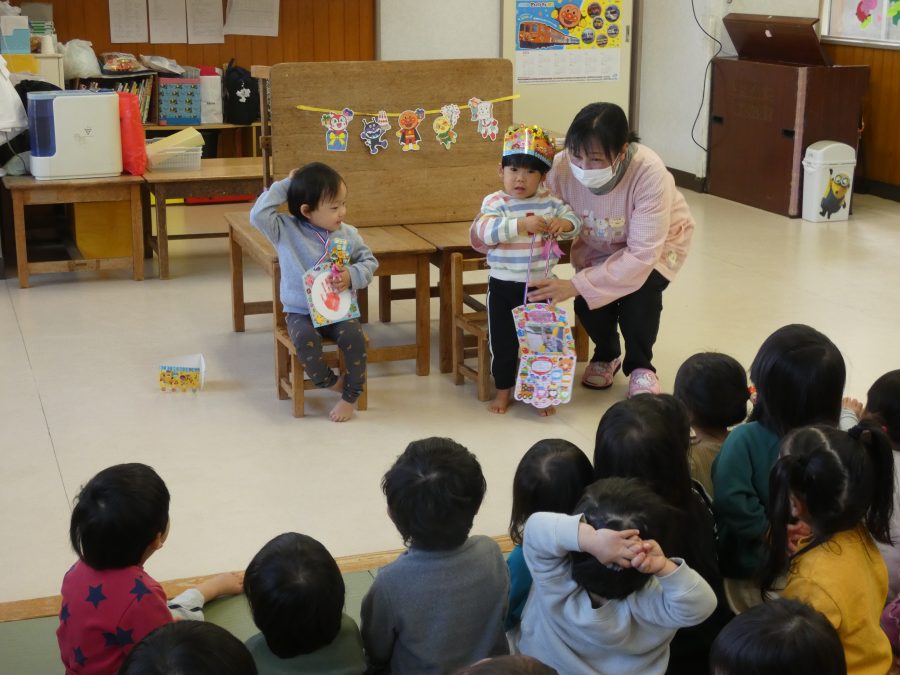 今日、3月生まれのお友達の誕生会をしました。今年度最後の誕生会です。未満児、以上児の様子をアップします。