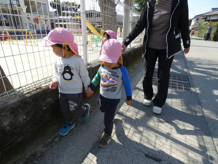桃2組さんが保手川沿いの桜を見に行きました。残念ながら、まだほとんど咲いていませんでしたが、河原でカニを見つけて大興奮でした。