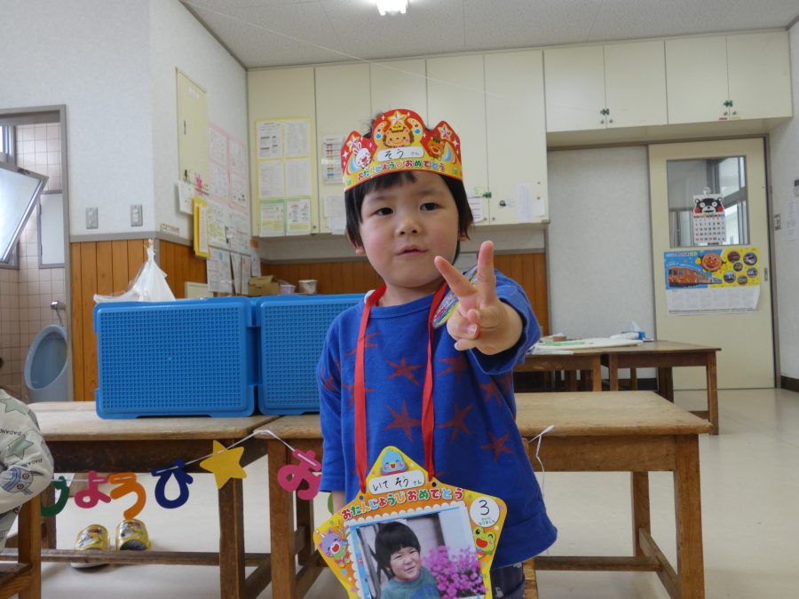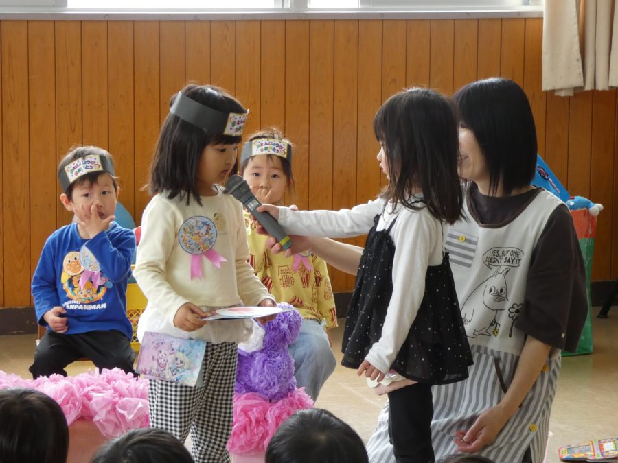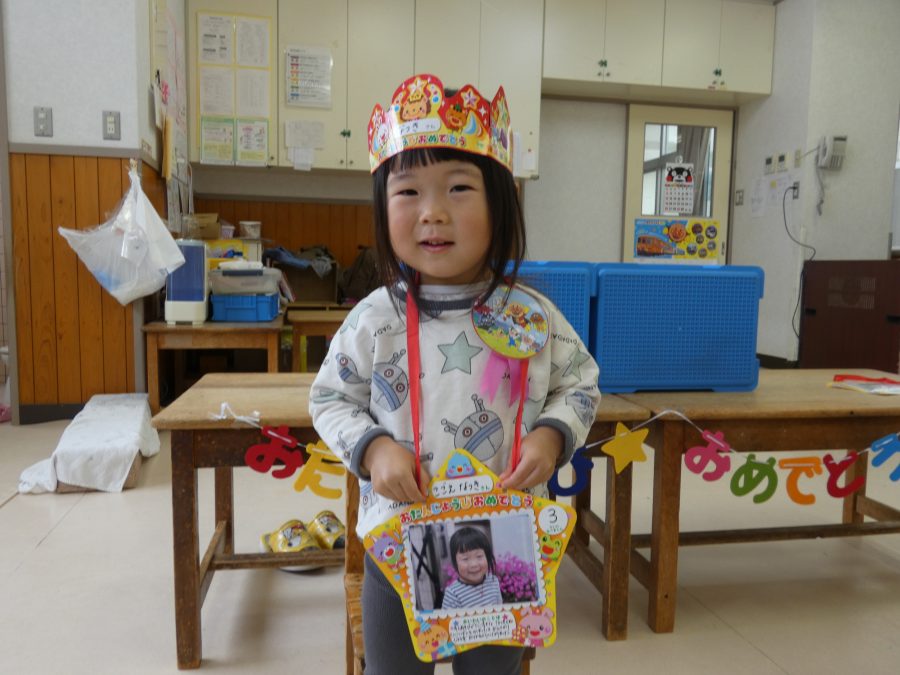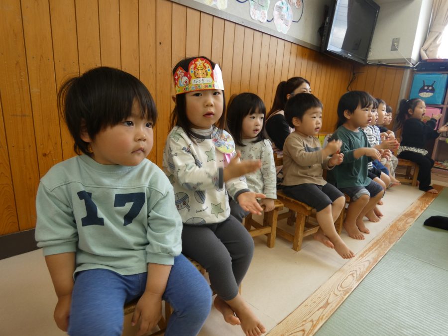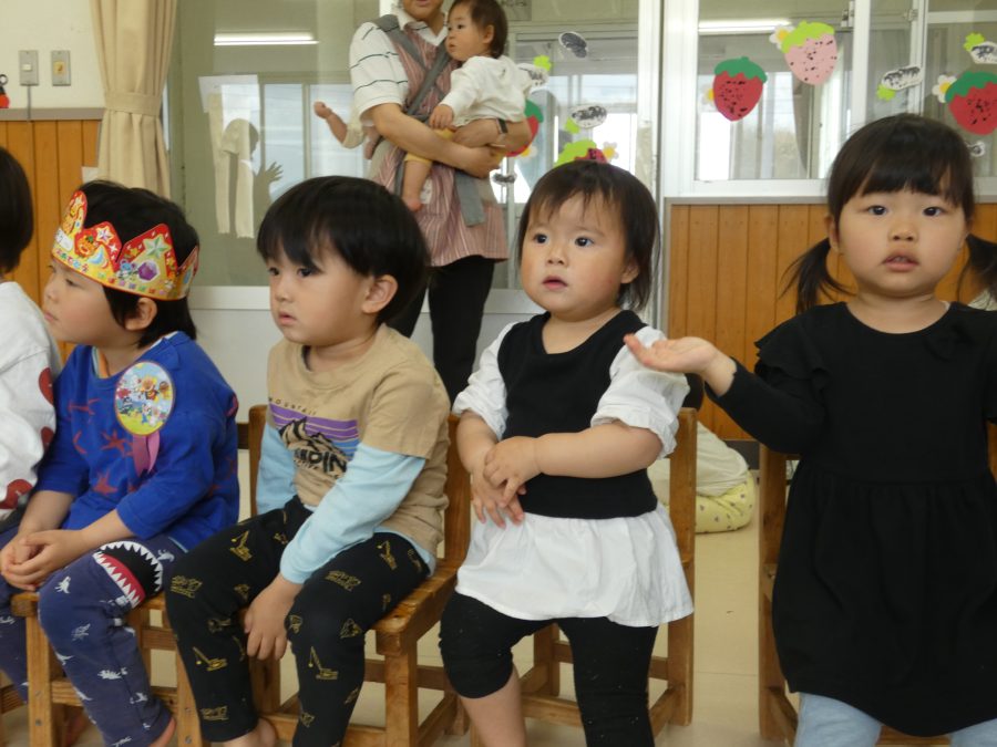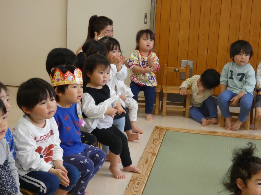 4月生まれのお友達の誕生会をしました。クラスで一番早く生まれた子どもたちです。今年も、月毎にお誕生会を開きます。みんな、自分の誕生月を楽しみにしてくださいね。