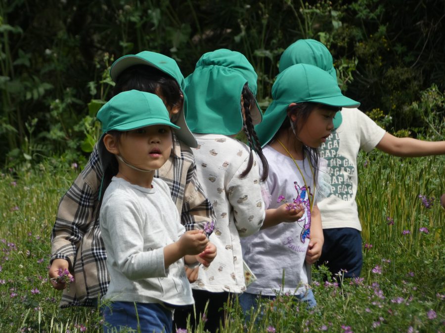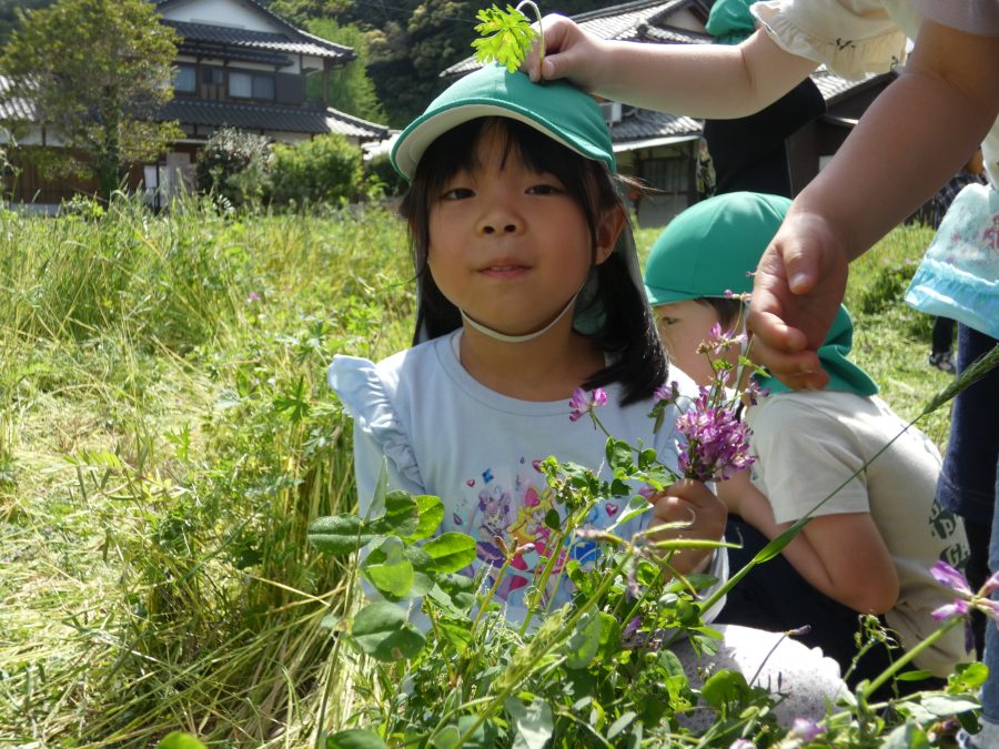 緑組さんが、農園(田んぼ)にレンゲ摘みに行きました。こどもたちは、ピンクのきれいなレンゲを摘んだり、虫探しに夢中になったり。春の自然を楽しみました。この後、「田おこし」「代かき」と準備を進め、あと1カ月余りで、「田植え」となります。こちらもお楽しみに。
