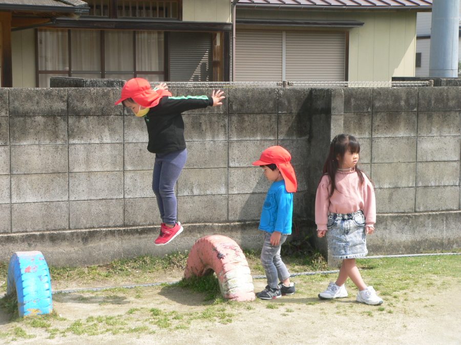 春を通り越して初夏を感じるような一日でした。園庭では、子ども達が思い思いに体を動かして遊んでいました。