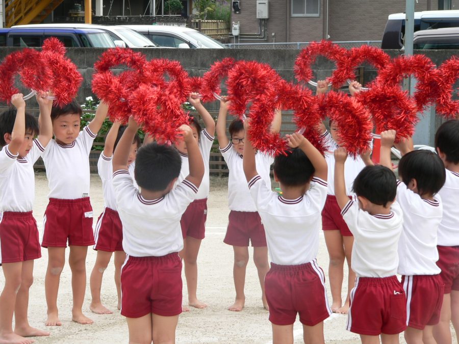 今日は、赤・黄・緑組さんで開閉会を含めた通しの合同練習をしました。途中、蒸し暑くなることもありましたが、みんな頑張りました。