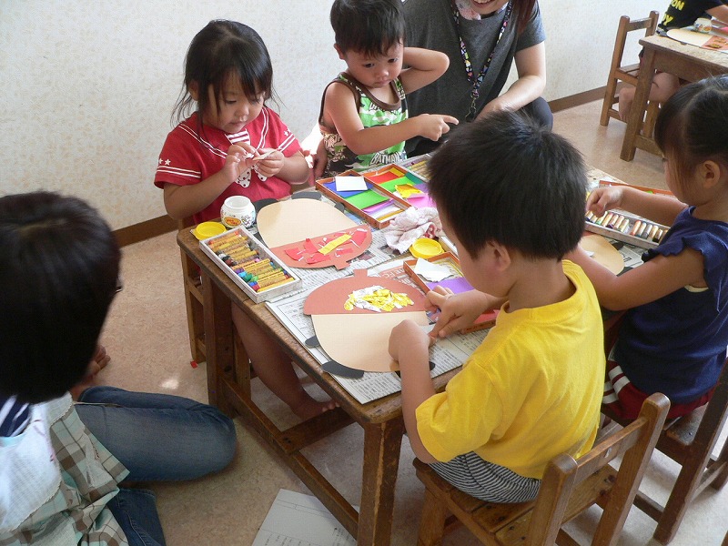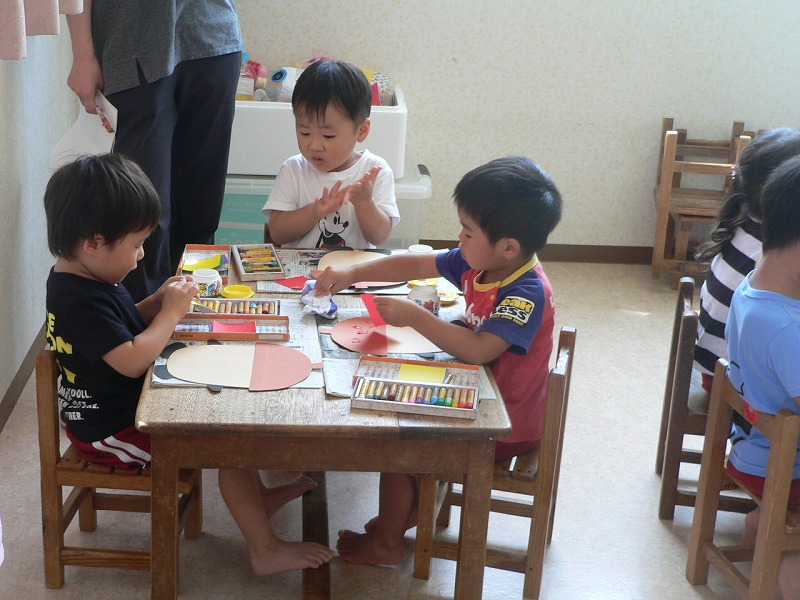 昨日に引き続き、今日も赤組さんで「部分実習」がありました。今日は「どんぐり君のカラフル帽子」作りでした。子どもたちは「制作」が大好きです。みんな熱心に取り組み、出来た作品を自慢げに見せ合っていました。