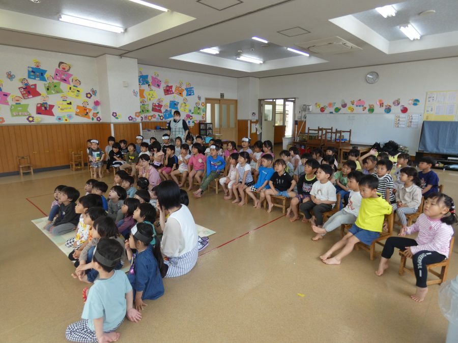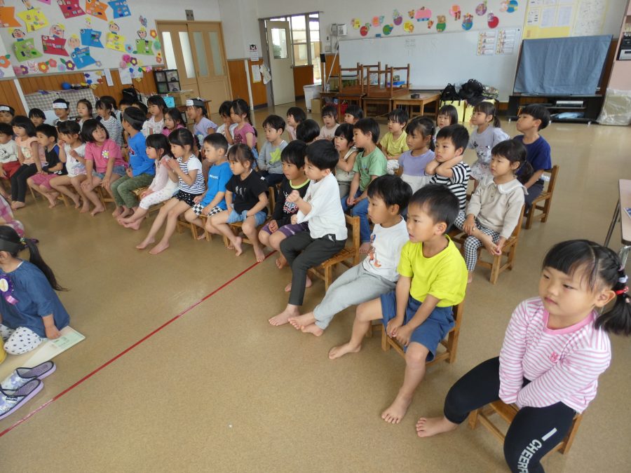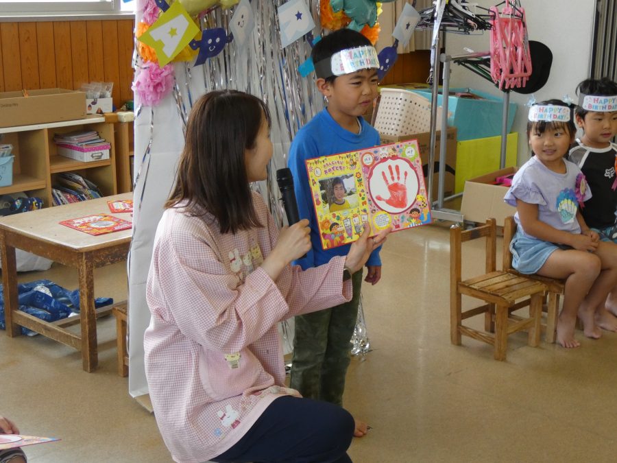 以上児さんたちの誕生会の様子です。これからだんだん暑くなりますね。少しずつ体を暑さにも慣れさせ、梅雨の時期や暑い夏を乗り切りましょう。