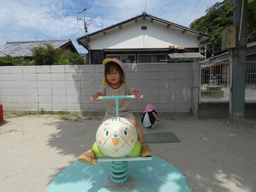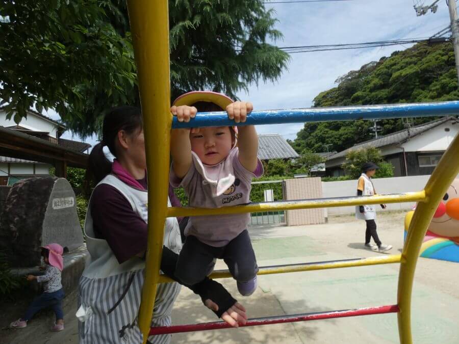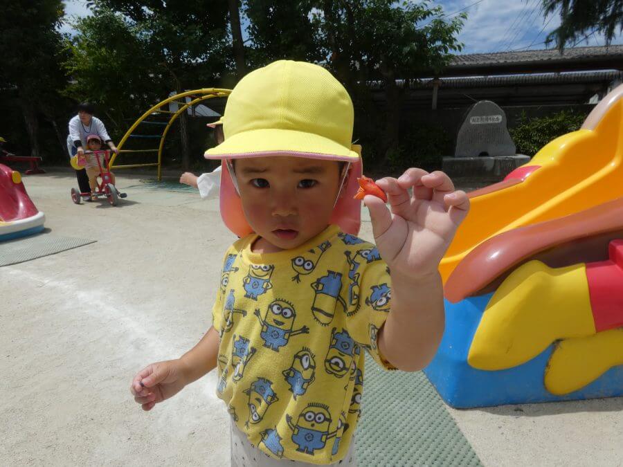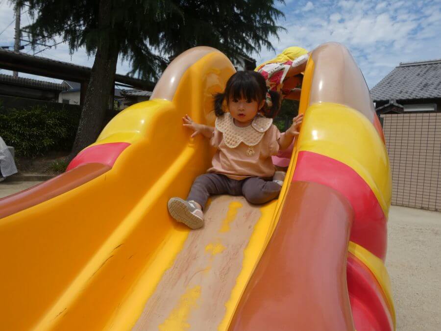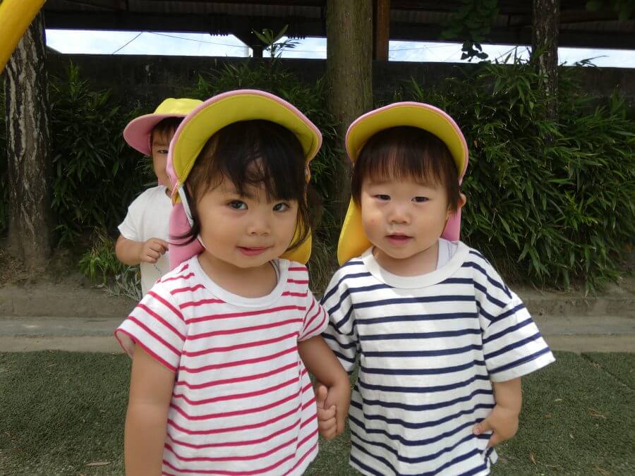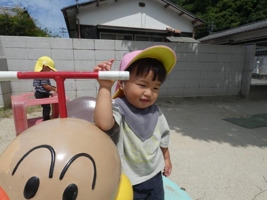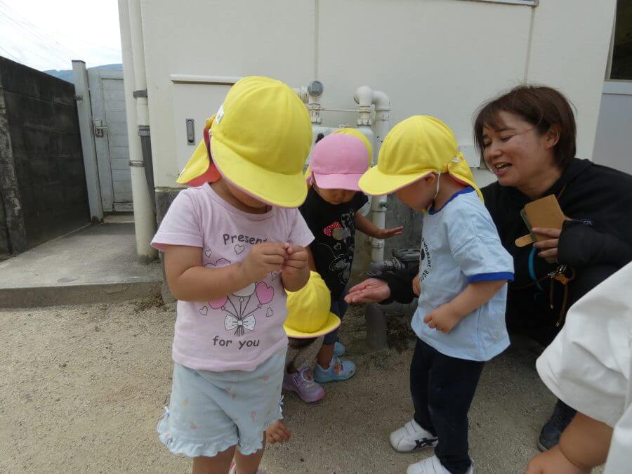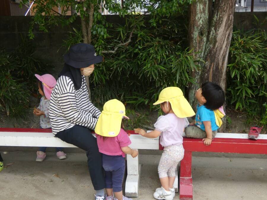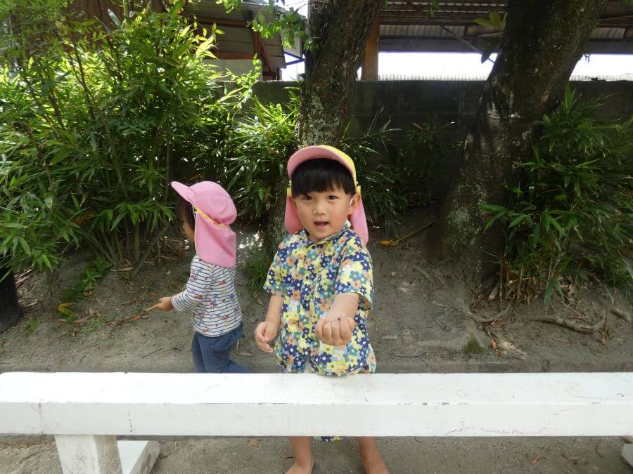 避難訓練の後、桃1組さんと桃2組さんが園庭で外遊びをしました。ジャングルジムやビートルで遊んだり、三輪車に乗って遊んだりしました。たくさん体を動かしました。体を動かした後は、水分もしっかりと補給しました。