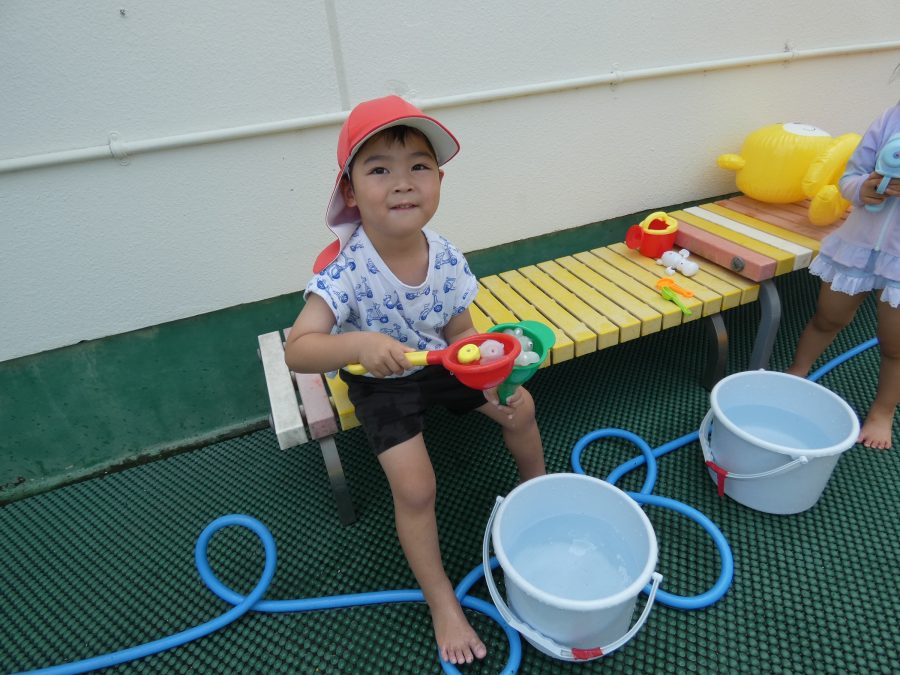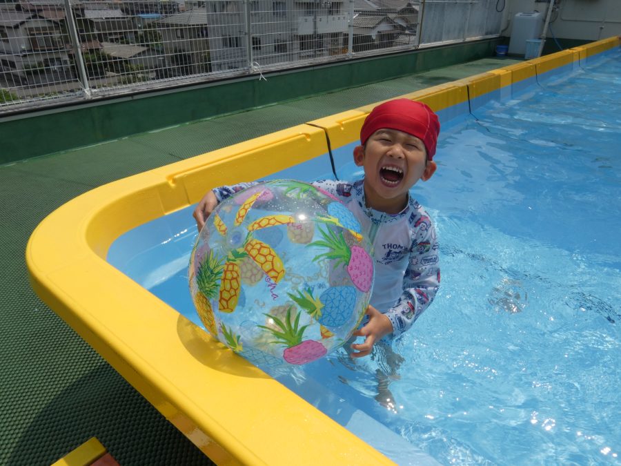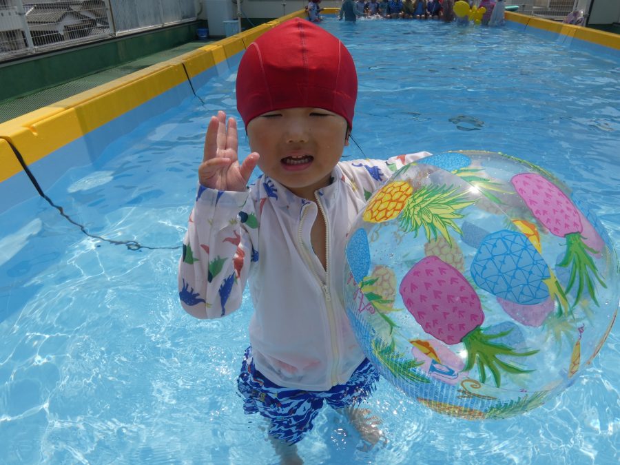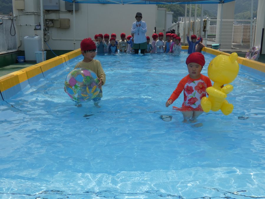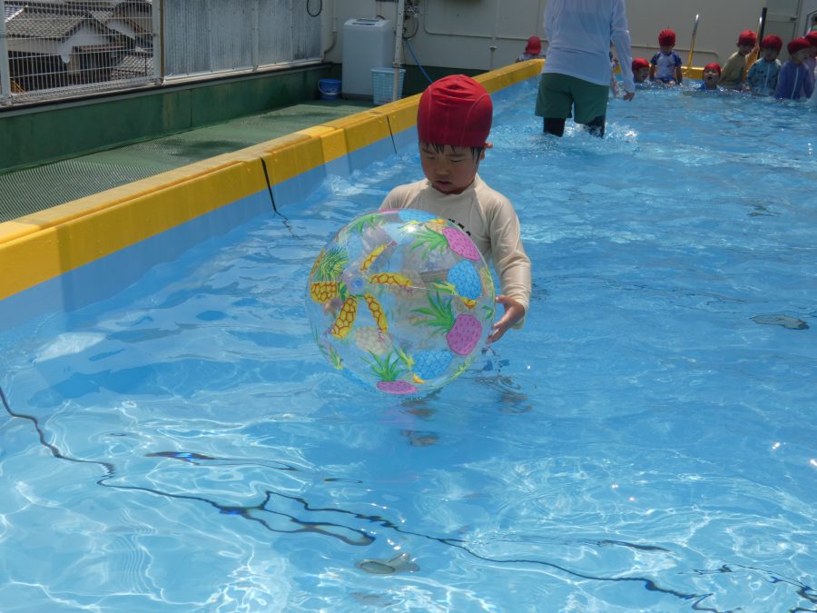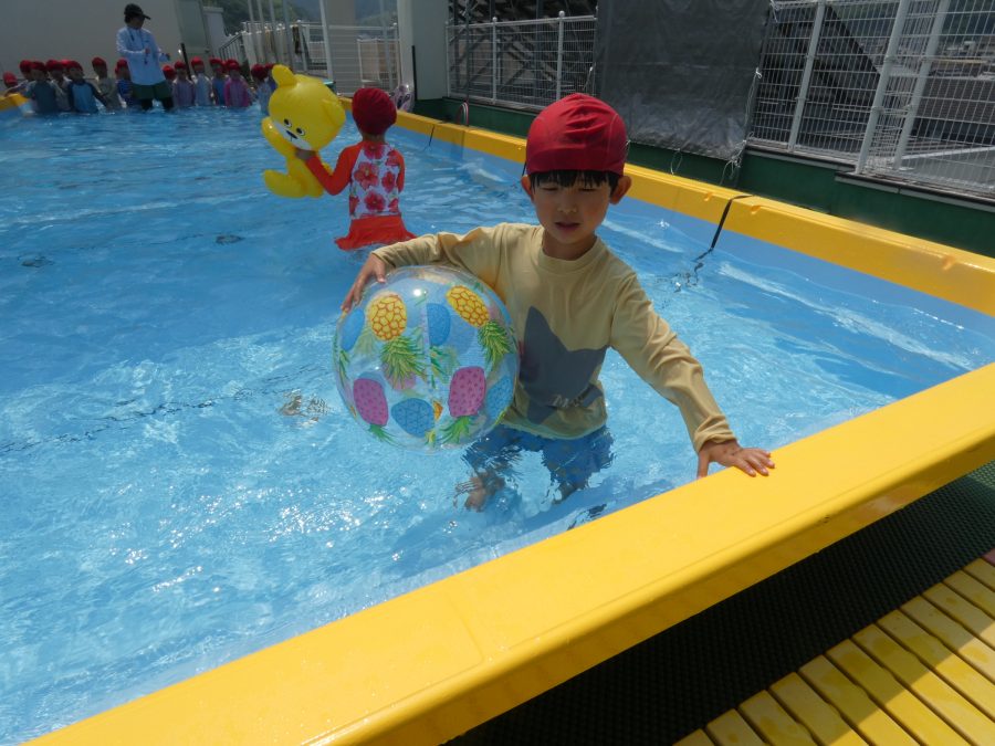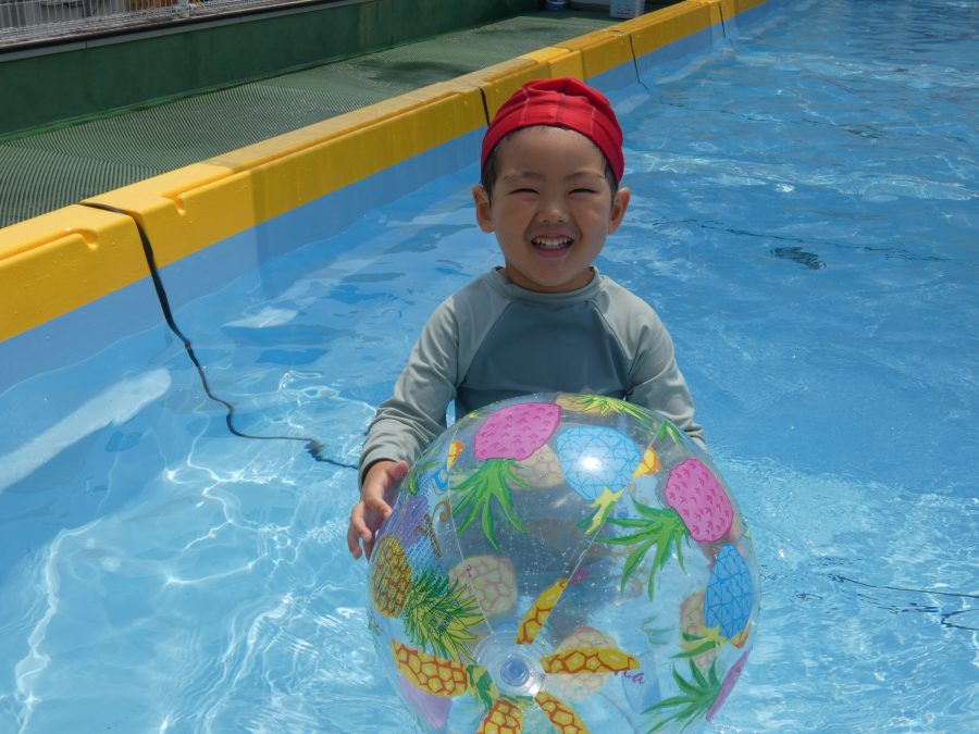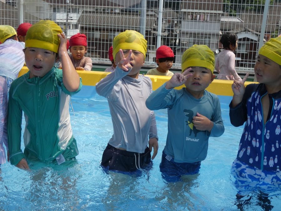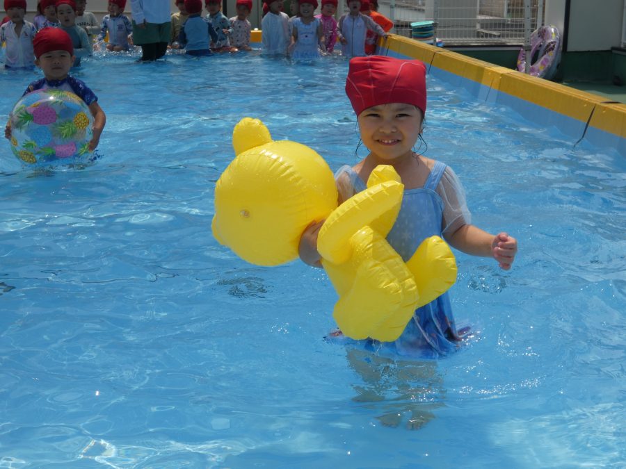 今日は、赤組さんと黄組さんのプール遊びの様子をアップします。赤組さんも黄組さんも水に慣れ、水遊びを楽しんでいます。