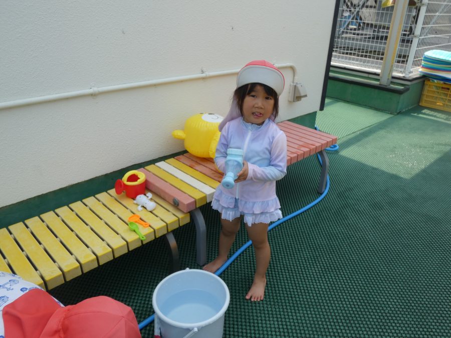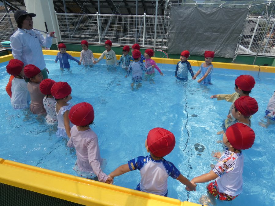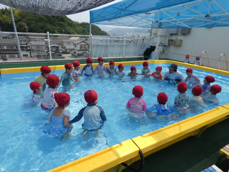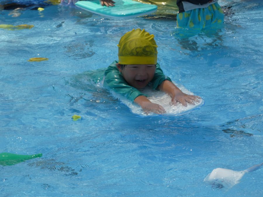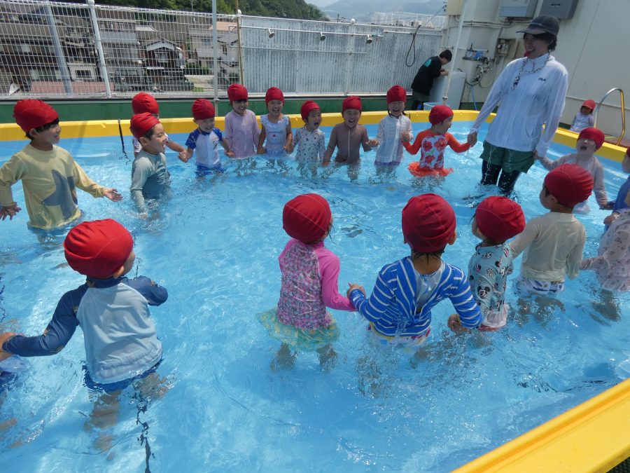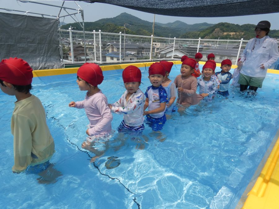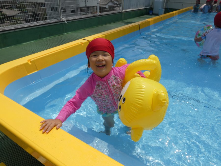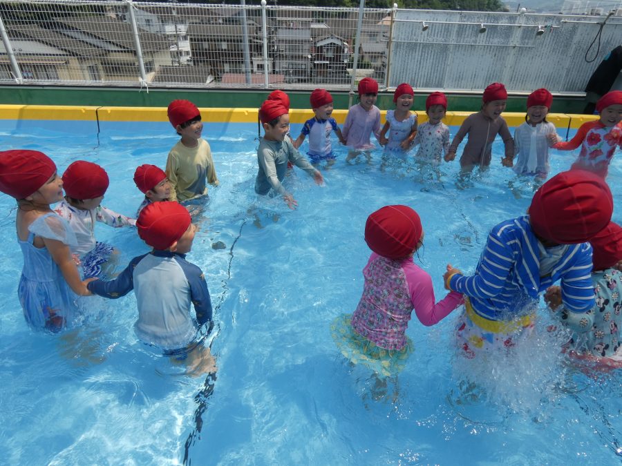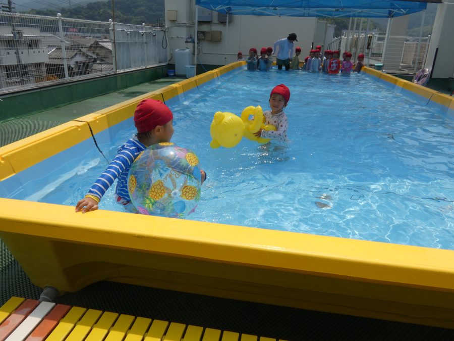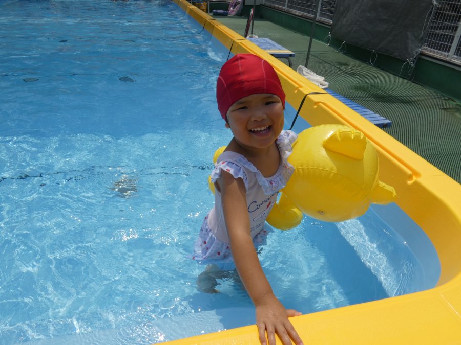 今日は、赤組さんと黄組さんのプール遊びの様子をアップします。赤組さんも黄組さんも水に慣れ、水遊びを楽しんでいます。