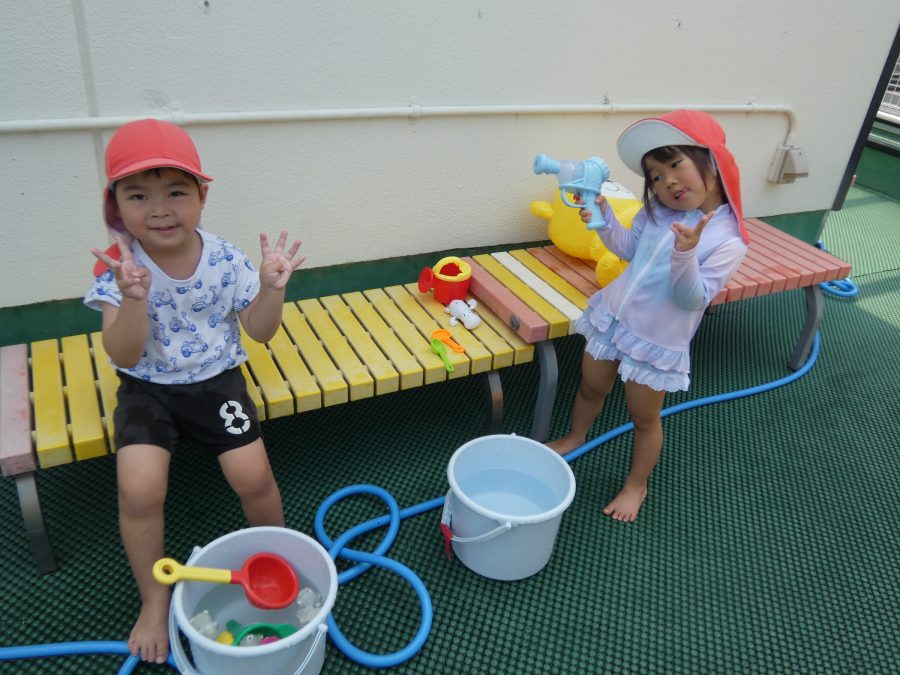 プール遊び 赤組さん、黄組さん