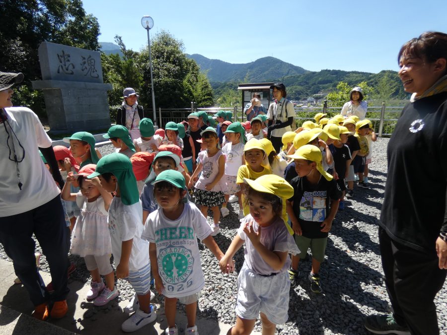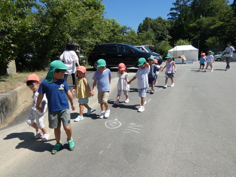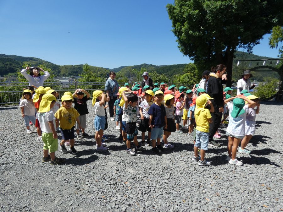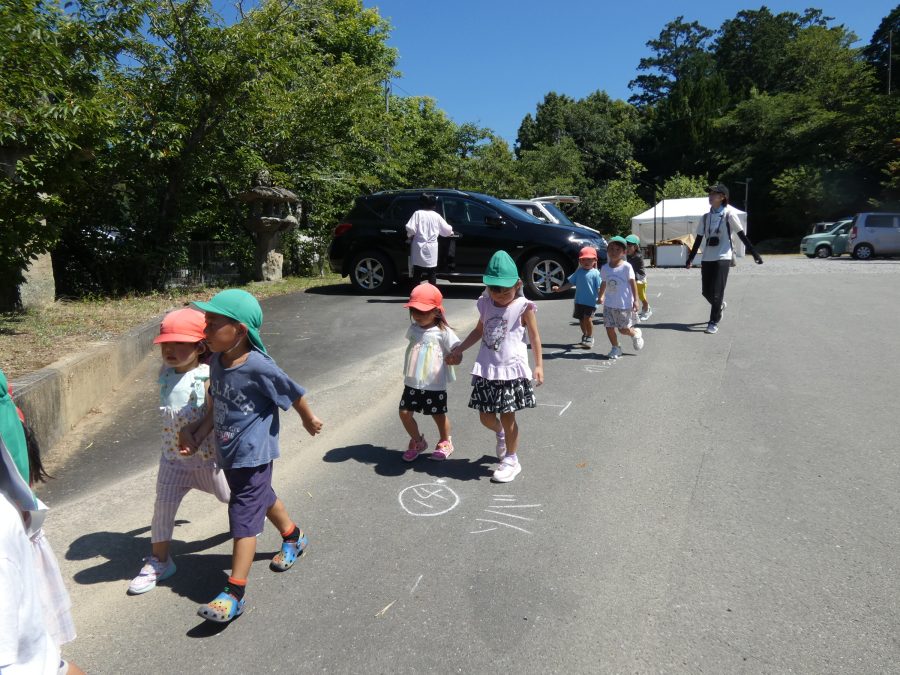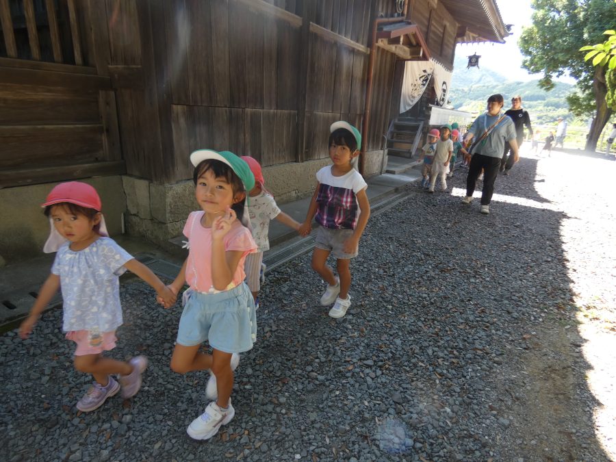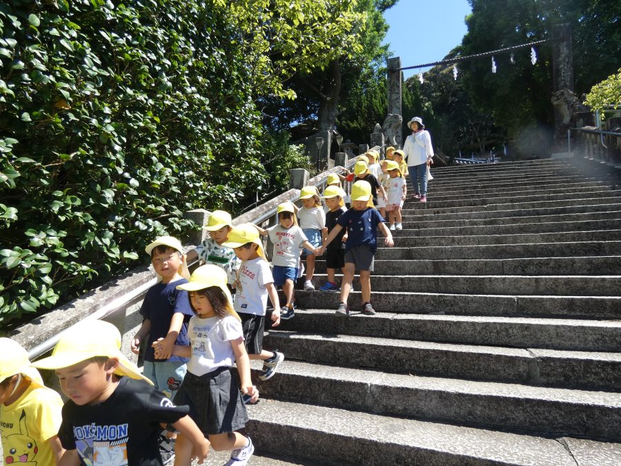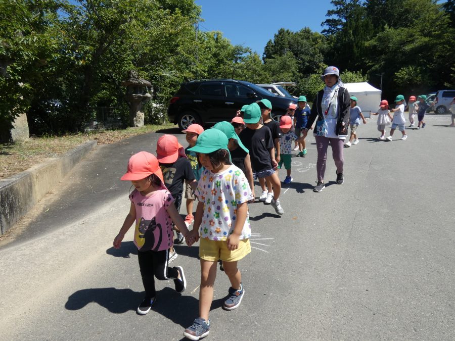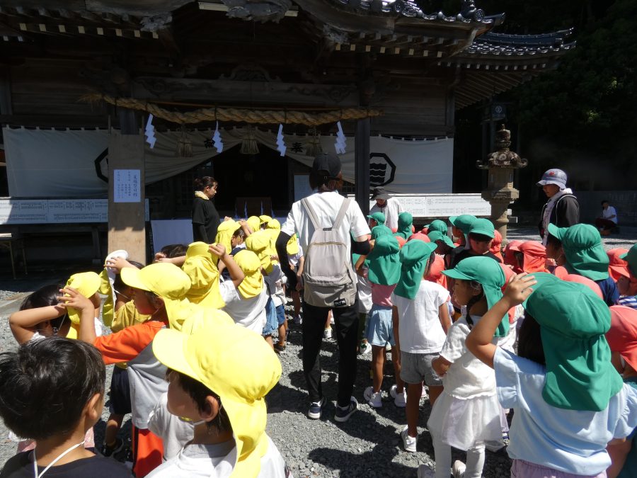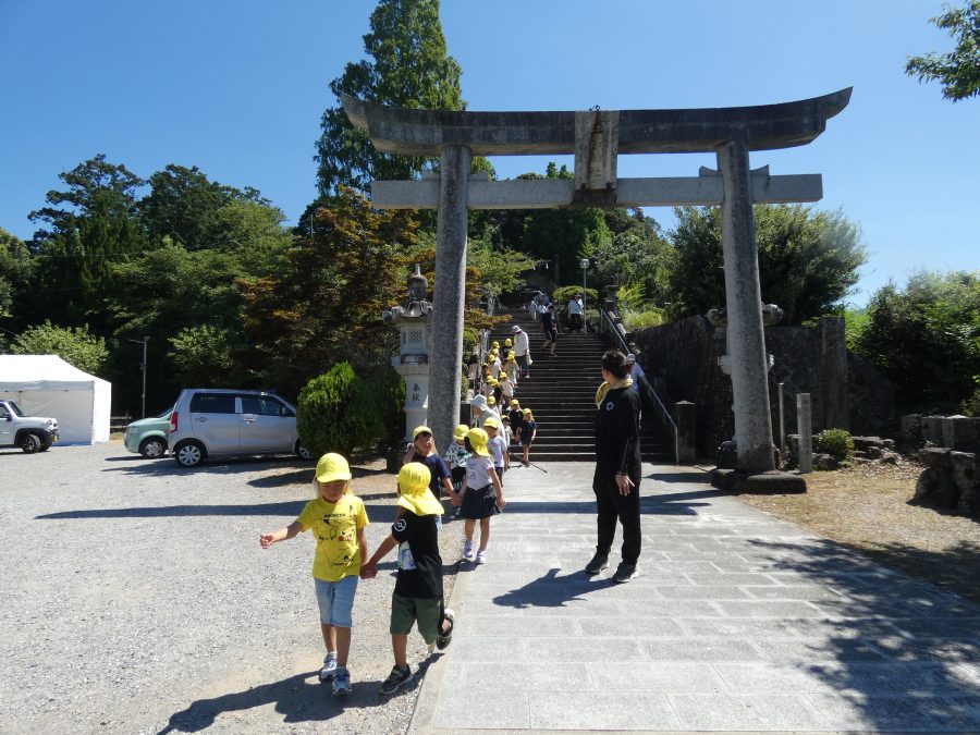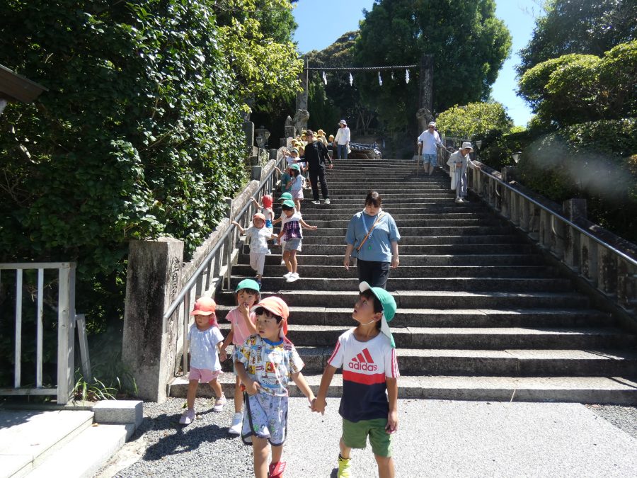 赤組、黄組、緑組さんが「輪抜け」に三島神社に行きました。「輪抜け」は、神前で心身を祓い清め、身体健全・家内安全を祈り明日への活力を養う神事です。暑さにも感染症にも負けず、これからもこども達の健やかな成長を願いたいですね。